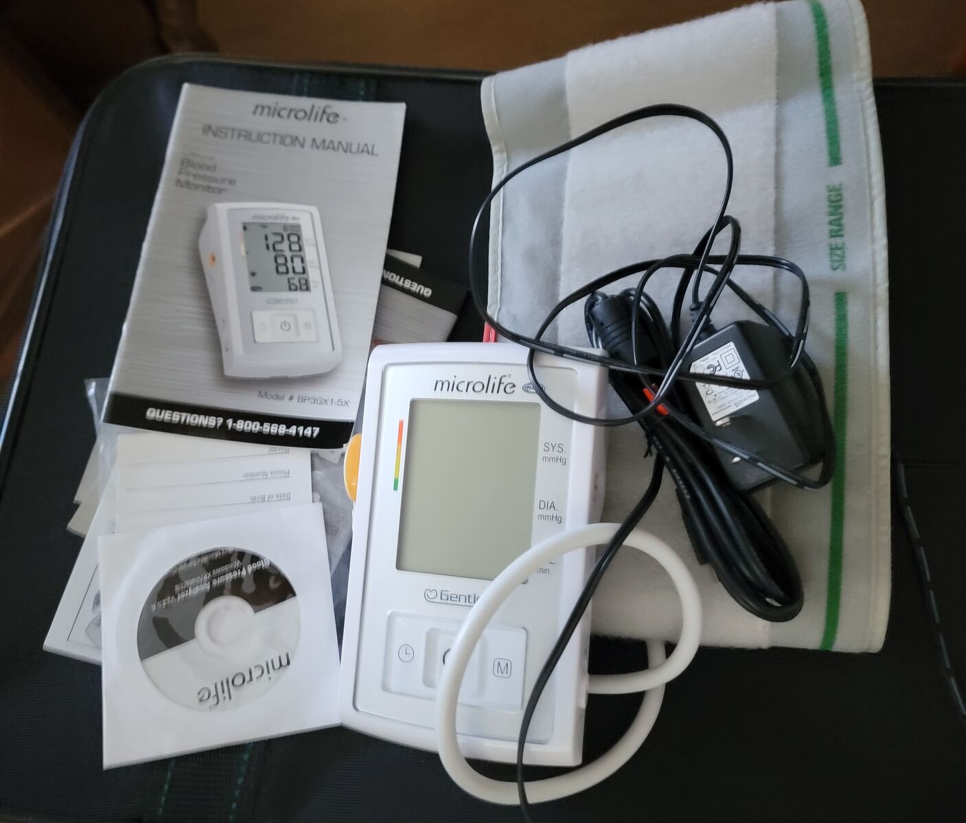 MICROLIFE BLOOD PRESSURE MONITOR. WORKS WITH A CORD OR BATTERIES.