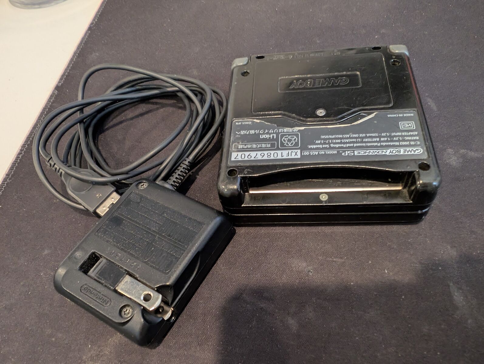 GooglePayGameboy advance SP in black. Recently replaced the battery with a 1600mah one which is double what the original had. Working great. Console and charger only no games included.
