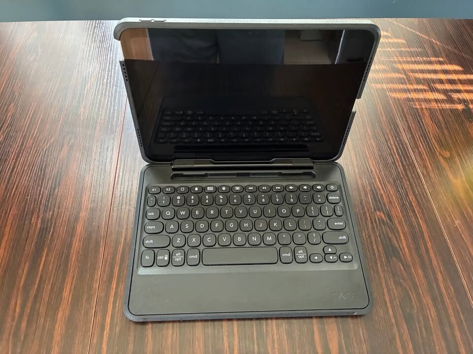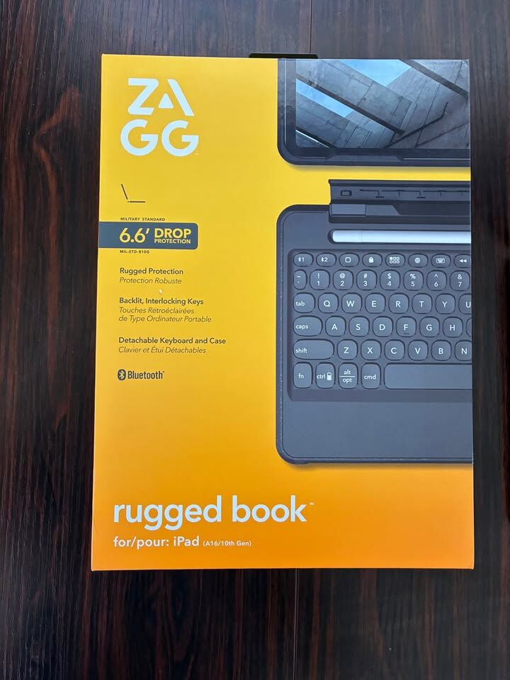 CashAppZagg 6.6' Drop Rugged Book Bluetooth Keyboard and Case. Solid and heavy duty case and the keyboard is basically full size.