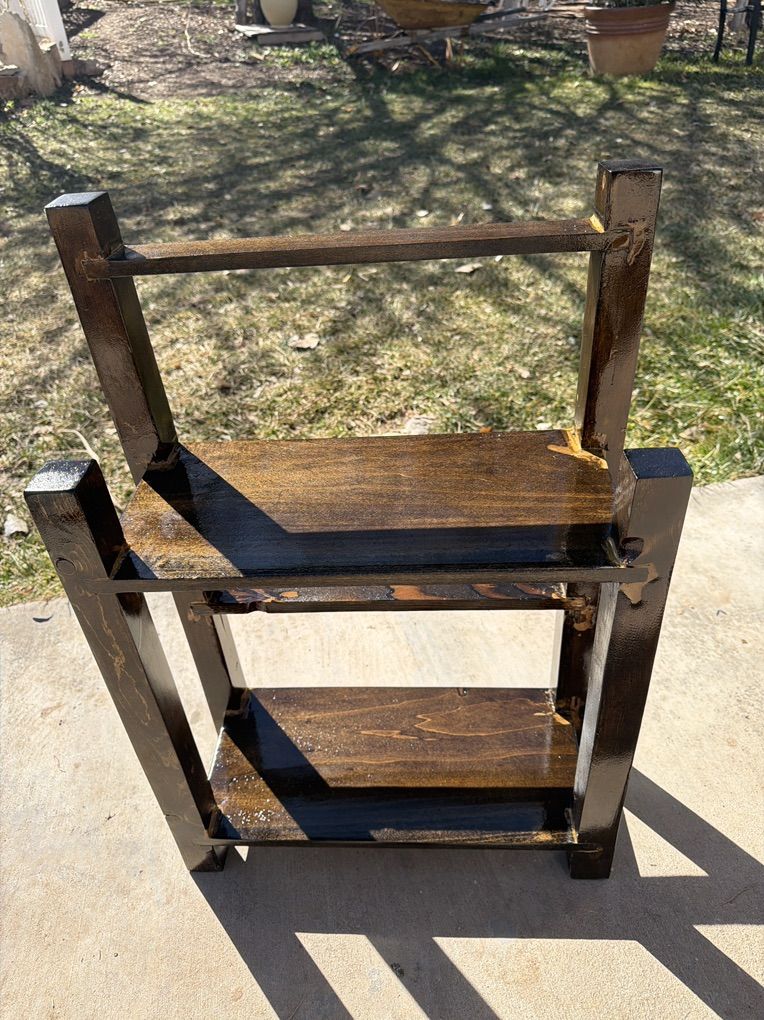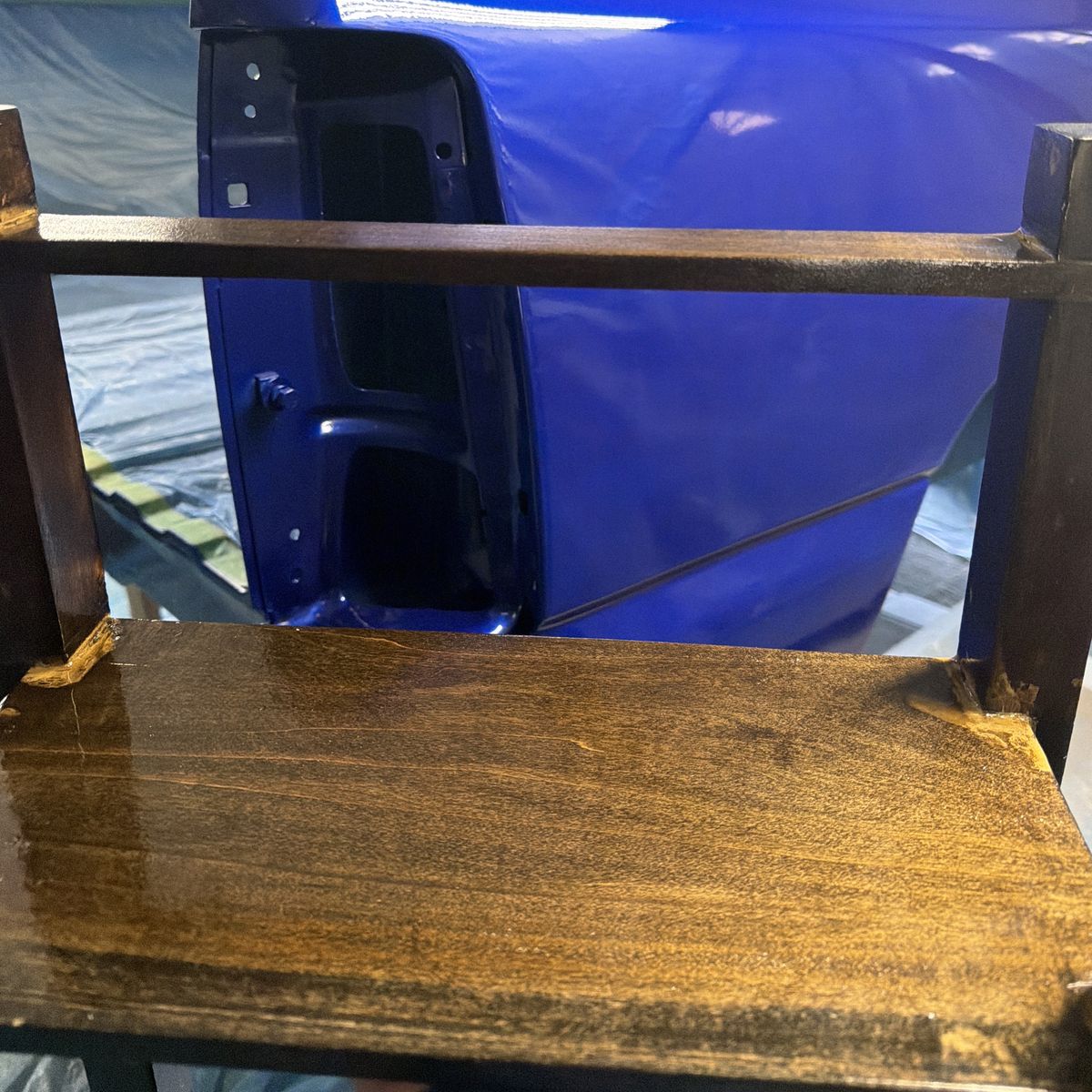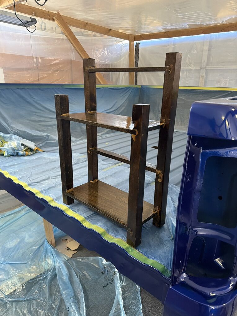 ApplePayEach cut was meticulously hand-sawed and the entire piece was crafted using only wood glue, without the use of nails or screws. It features a dark walnut automotive clear coat.