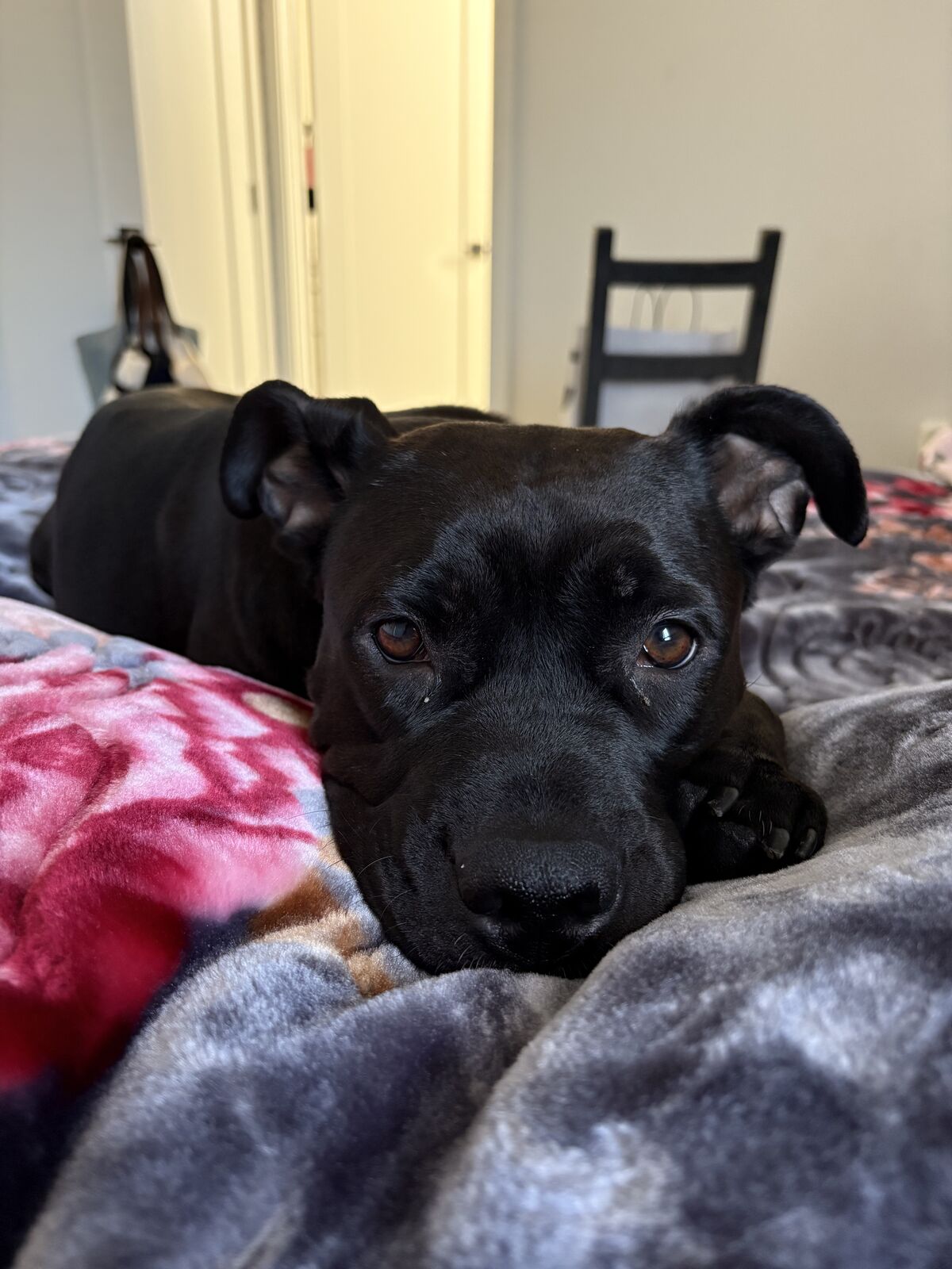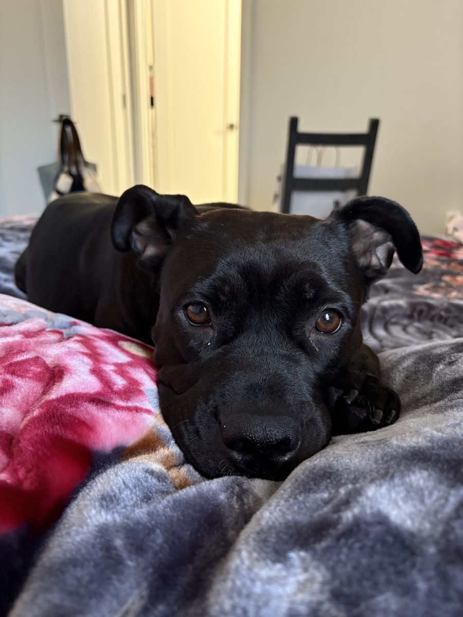 She’s 2 years old! She’s mixed with pitbull and German shepherd.