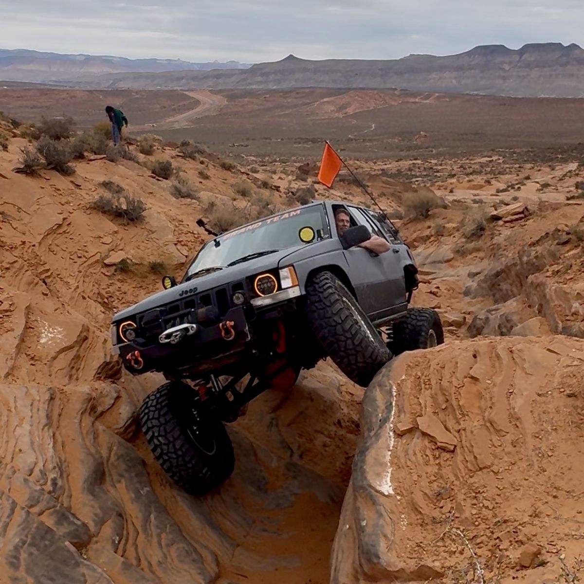 This Jeep isn’t set up to be a daily driver. It does fine around town but I wouldn’t recommend driving it on the freeway. I use it on the trails a lot so it’s not perfect- lots of dents and scrapes. -4.0 with auto -NP231 with SYE -High Pinion Dana 30. Inner sleeved, c-gussets, WJ knuckle swap, 4.88, ARB locker, 27 spline chromoly axles, CavFab steering with 3/4” heims. -Power steering cooler, steering box and pitman arm brace for extra support -Ford 8.8, disc brakes, Spartan locker, 31 spline shafts -Core4x4 long arm kit. About 7” of lift -Bilstein 5100 shocks -12,000 lb winch -5 37” Cooper STT Pro tires on 17” Vision Manx beadlock rims. Also have 4 additional spares. -Sound system w/ 2 15” subs