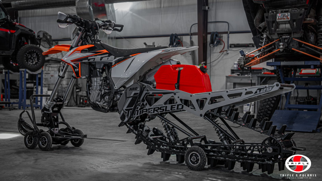 This KTM is equipped with a 2022 Timbersled Aro 3, 129" track - for deep powder action!