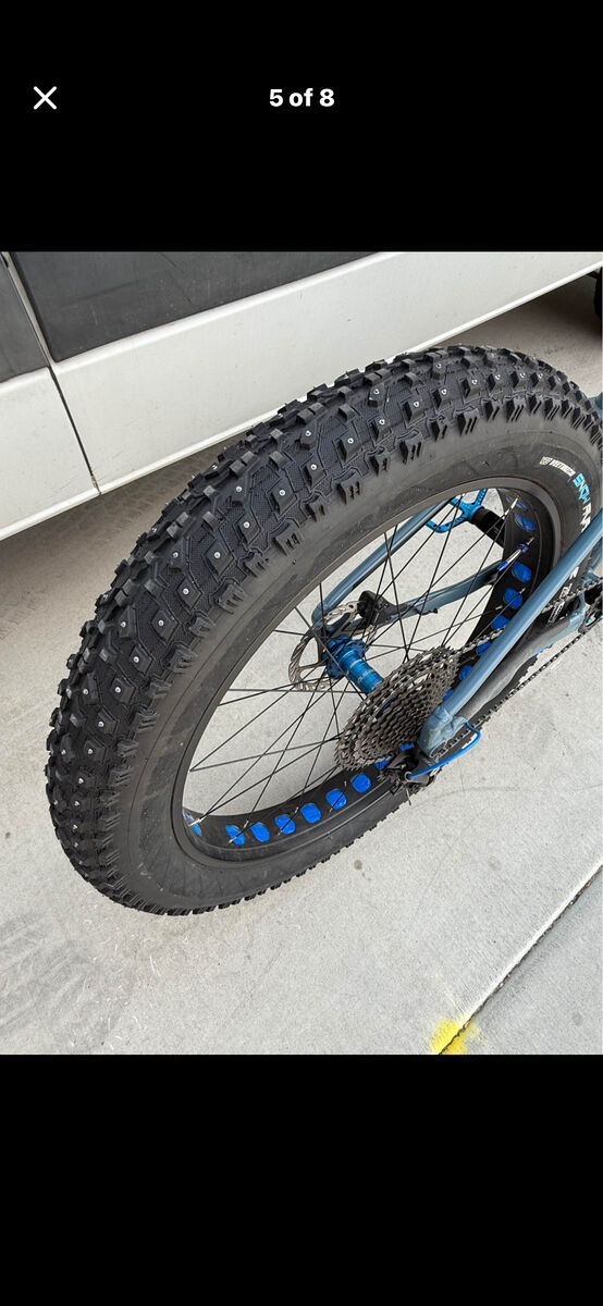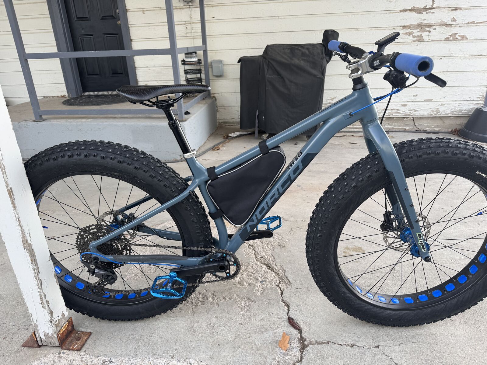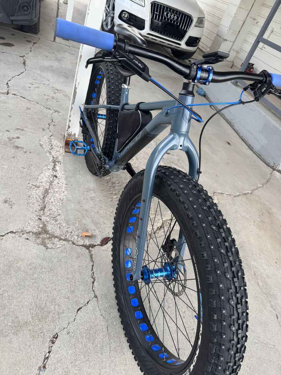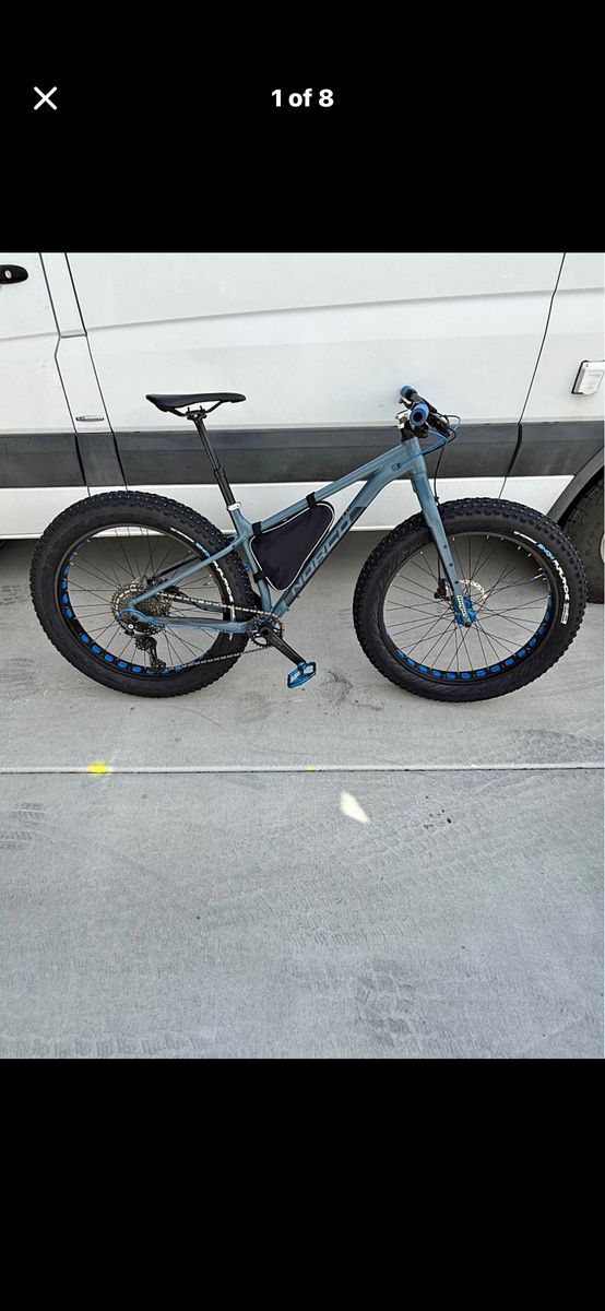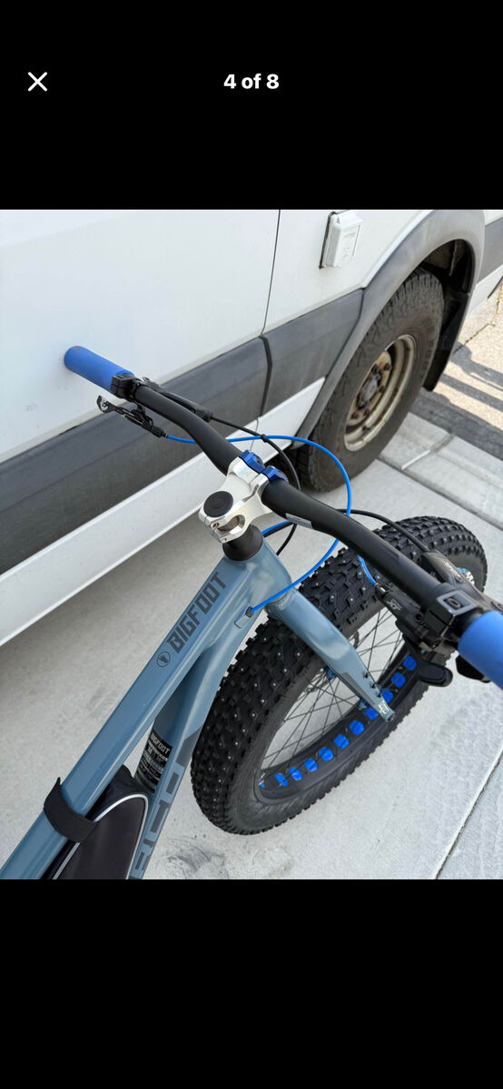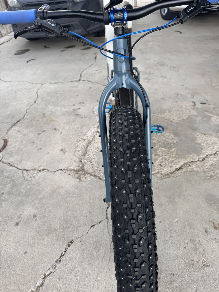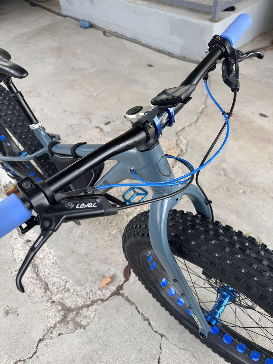 This thing is loaded. Shimano Deore, 4.5” wide studded 27.5” tires ($450 Value). Fatsnow Hubs, dropper post, SRAM Level brakes, I9 Stem, Wolftooth 32T oval chain ring, One up aluminum pedals. And the tires are set up tubeless. Overall, the bike has $1000 in upgrades alone. Great bike with no issues ready to ride. Bought for my son but didn’t want to get into mountain biking. the frame size medium and the year is a 2022. Online these are still around $1500 without my upgrades for the Bigfoot 2. And originally was 2500 when it was new.