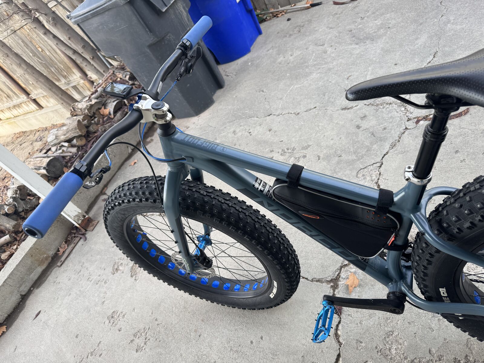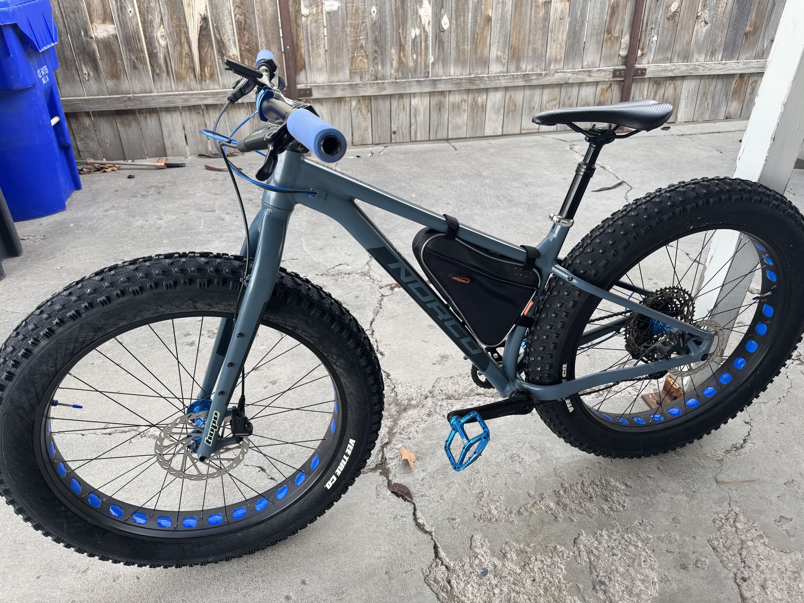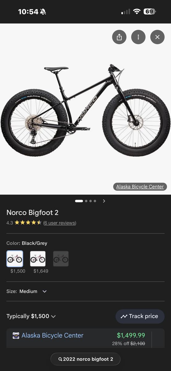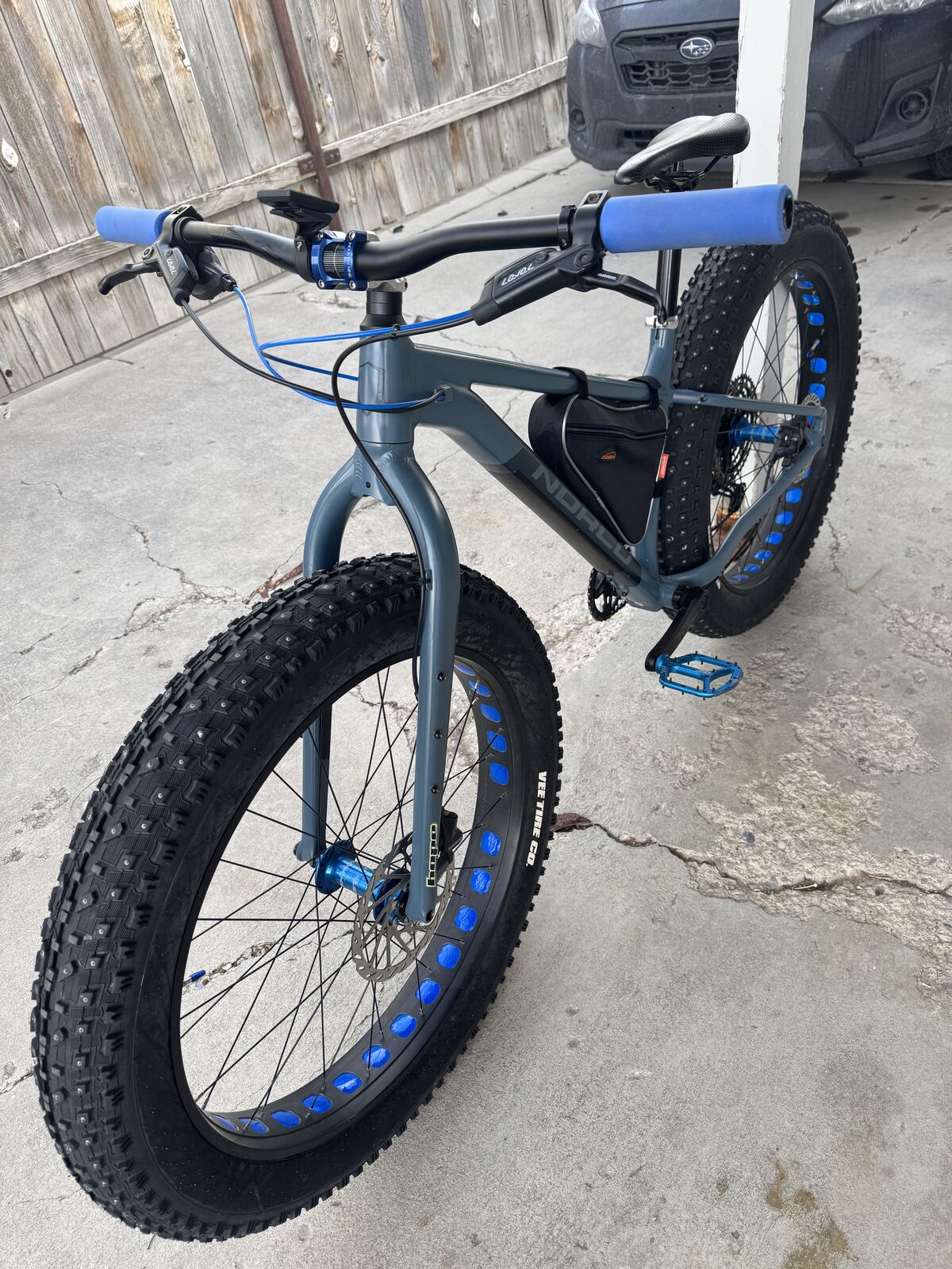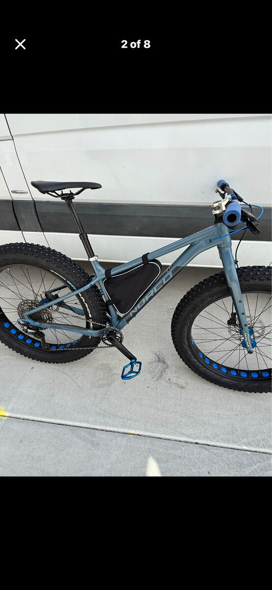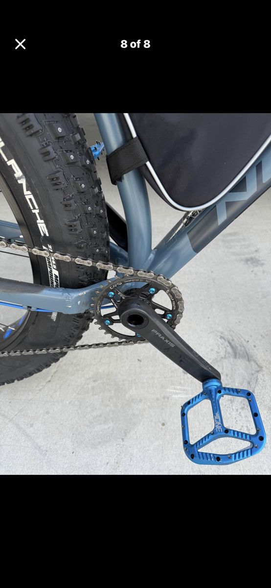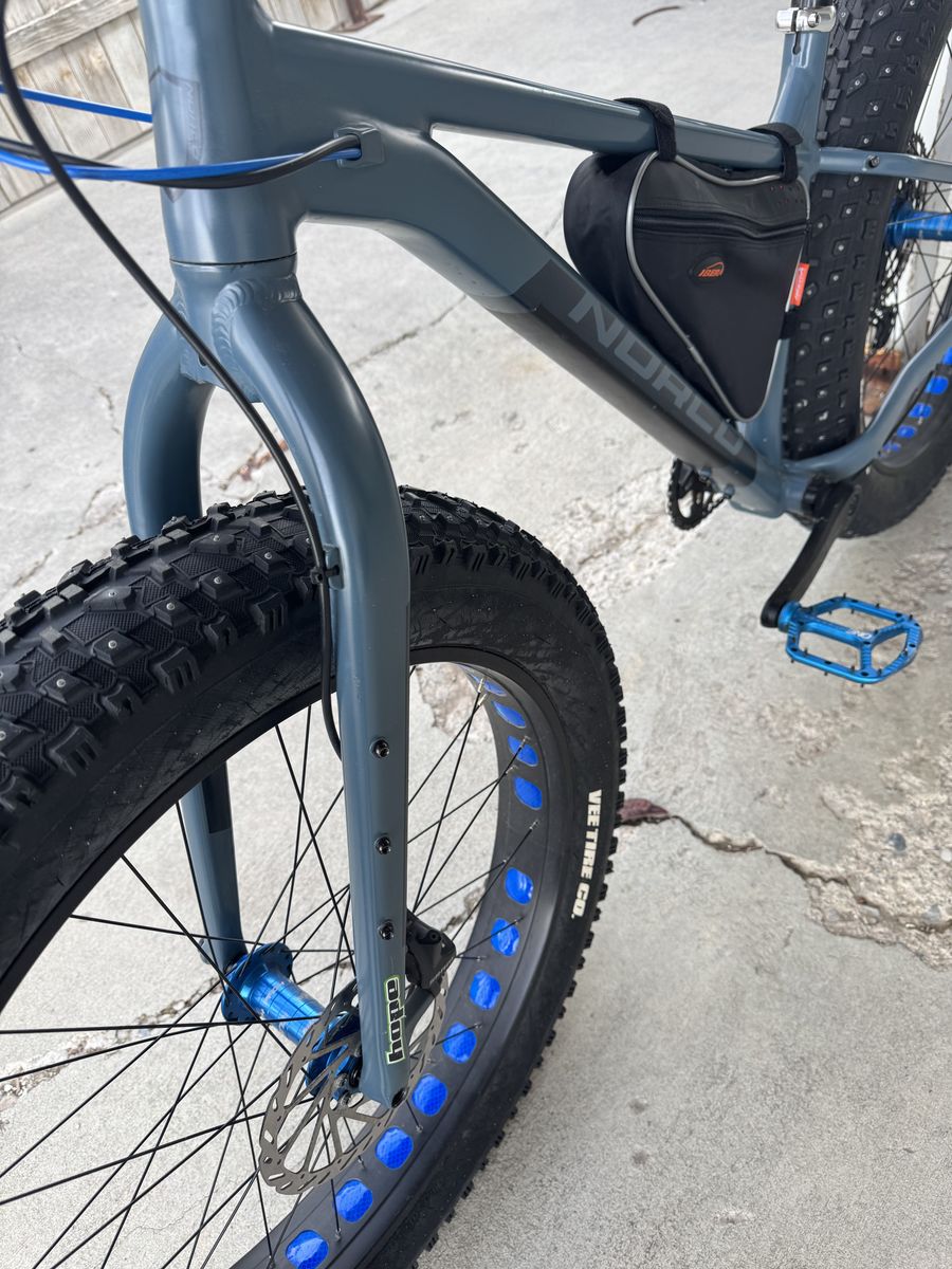 This thing is loaded. Shimano Deore, 4.5” wide studded 27.5” tires ($450 Value). Fatsnow Hubs, dropper post, SRAM Level brakes, I9 Stem, Wolftooth 32T oval chain ring, One up aluminum pedals. And the tires are set up tubeless. Overall, the bike has $1000 in upgrades alone. Great bike with no issues ready to ride. Bought for my son but didn’t want to get into mountain biking. the frame size medium and the year is a 2022. Online these are still around $1500 without my upgrades for the Bigfoot 2. And originally was 2500 when it was new.