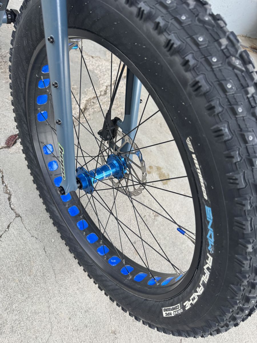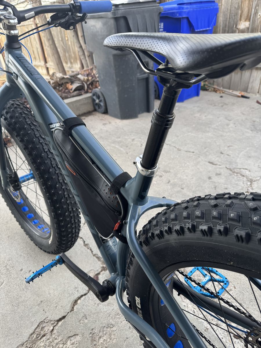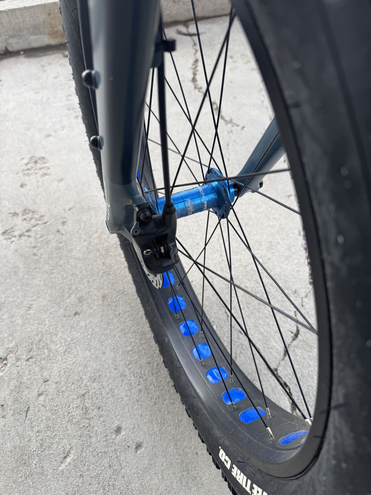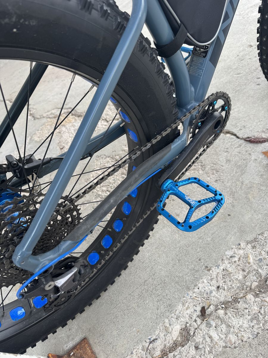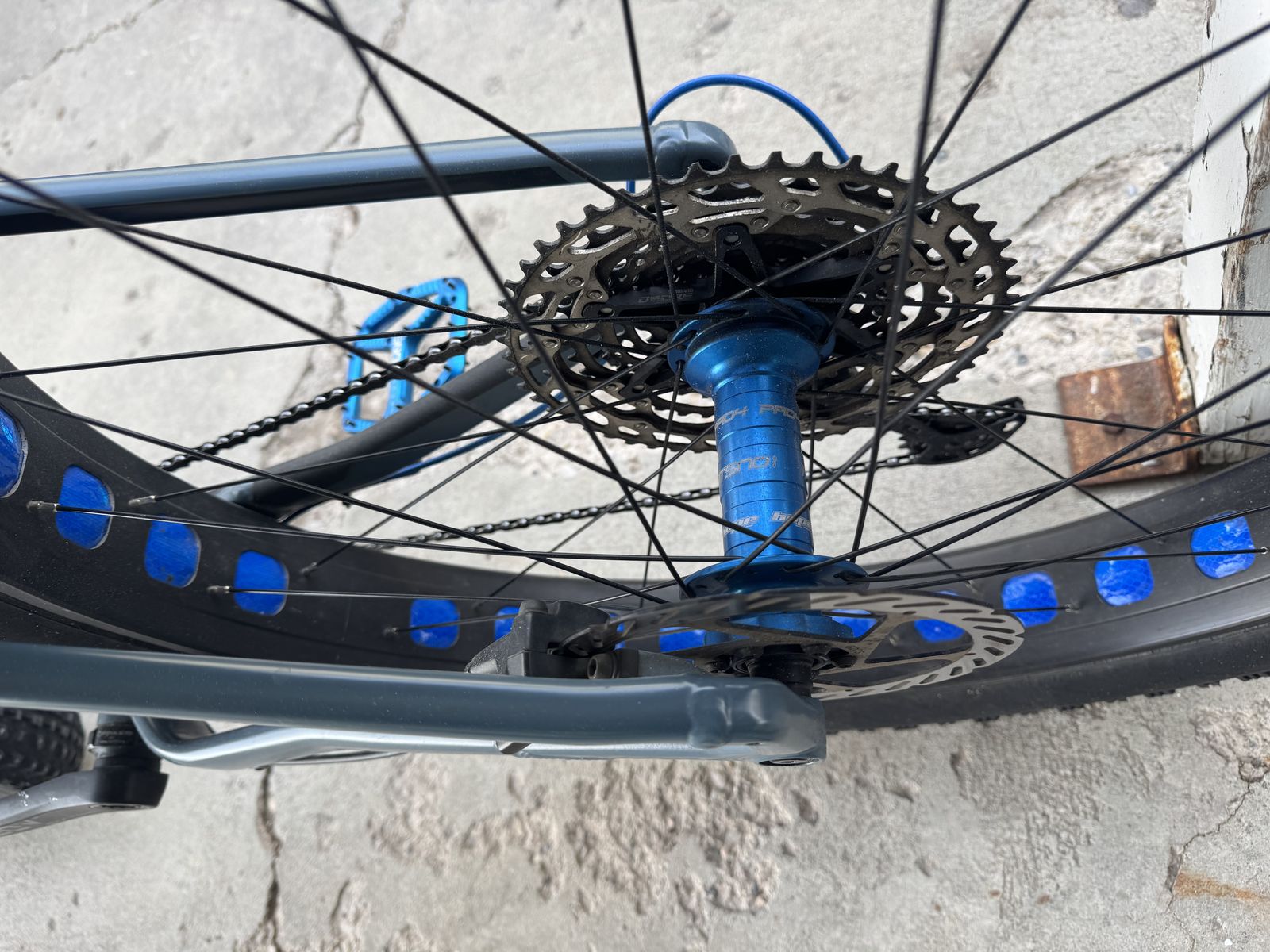 This thing is loaded. Shimano Deore, 4.5” wide studded 27.5” tires ($450 Value). Fatsnow Hubs, dropper post, SRAM Level brakes, I9 Stem, Wolftooth 32T oval chain ring, One up aluminum pedals. And the tires are set up tubeless. Overall, the bike has $1000 in upgrades alone. Great bike with no issues ready to ride. Bought for my son but didn’t want to get into mountain biking. the frame size medium and the year is a 2022. Online these are still around $1500 without my upgrades for the Bigfoot 2. And originally was 2500 when it was new.