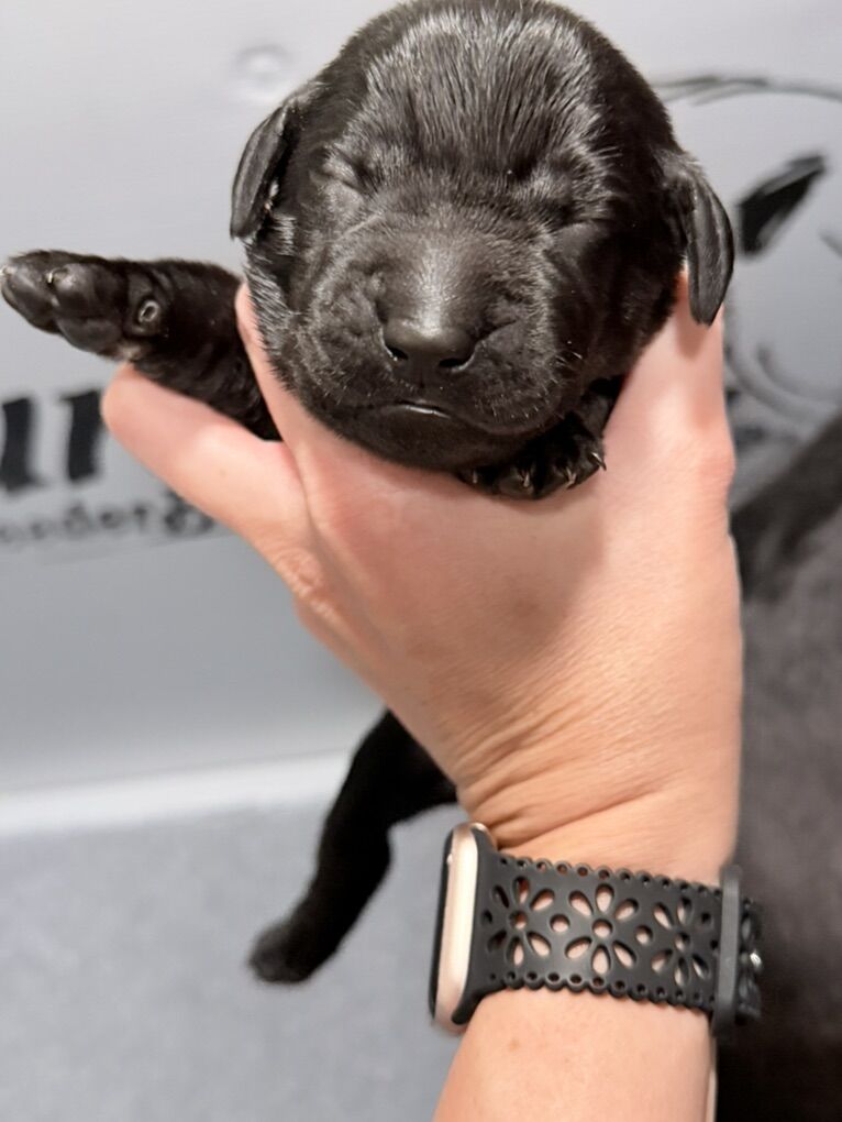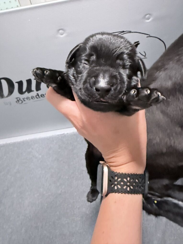 Tease (Dam)- The mother is a stunning 65lb AKC Black Labrador who truly does it all. She is the perfect balance of a driven athlete and a dependable family companion. Whether she’s in the field or on the couch, her temperament is unmatched. Performance: High hunt drive, incredible retriever, and remarkably easy to train. Home Life: Calm and well-mannered indoors; she is excellent with other dogs and a natural sweetheart. Health Clearances: EIC/CNM Clear OFA hips good, CERF clear