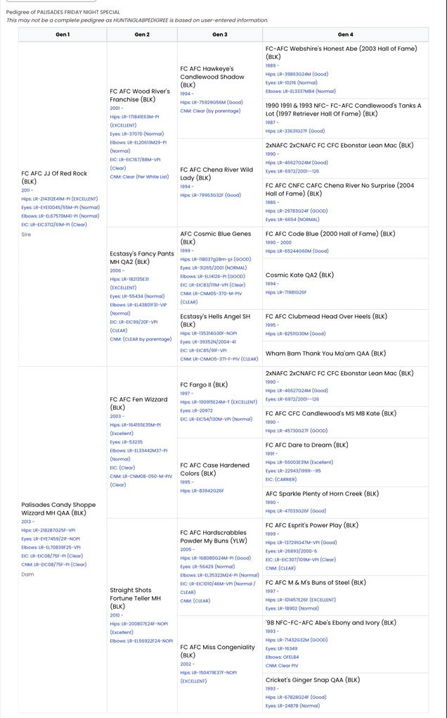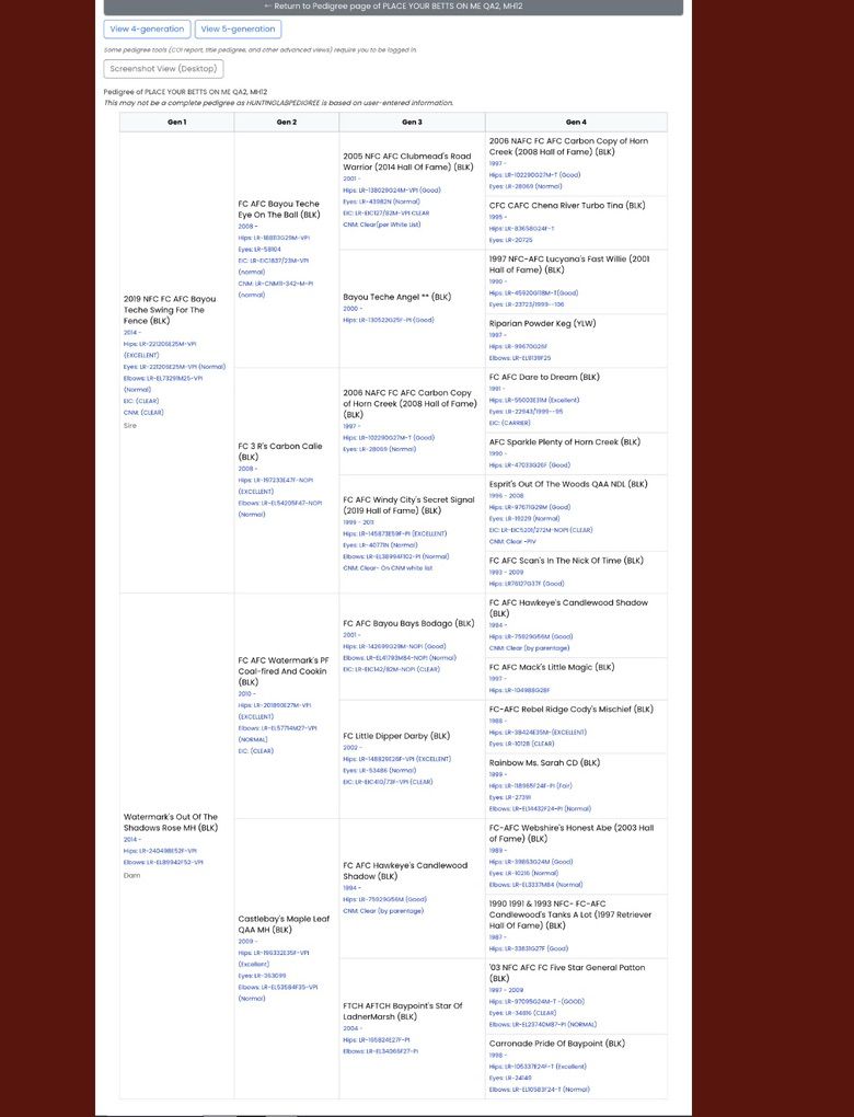 Mookie (Sire)- Mookie: In field trials he has an All-Age Amateur Win with 13 points (only 2 points to achieve AFC), Qualified All Age two times, competed in the 2022 National Derby Championship in Missouri for field trials and made it 8/10 of the series with an amateur handling. In hunt tests he has his Master Hunter title with 12 Master passes and finished the Master Nationals for 2023. Sired by National Field Champion Bayou Teche Swing for the Fence (Foxx). Mookie can turn it on in competitions with an amazing off switch when not competing. He is a well-mannered gentleman in the home and a chill buddy who can be taken everywhere, including flying as a service dog. Mookie looks for opportunities to please. He has his Embark health testing completed, eye testing completed, OFA hips/elbows, cardiac screening, and patellar ligament testing. In the off season he loves hunting waterfowl, pheasants in North Dakota, pup cups from Sodalicious, runs in the rain on the beaches of Oregon, and he does like yoga with his owner.