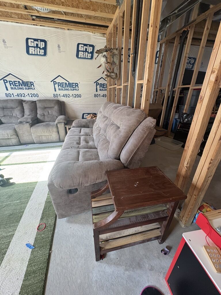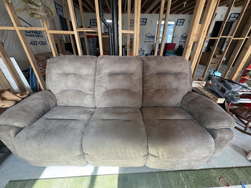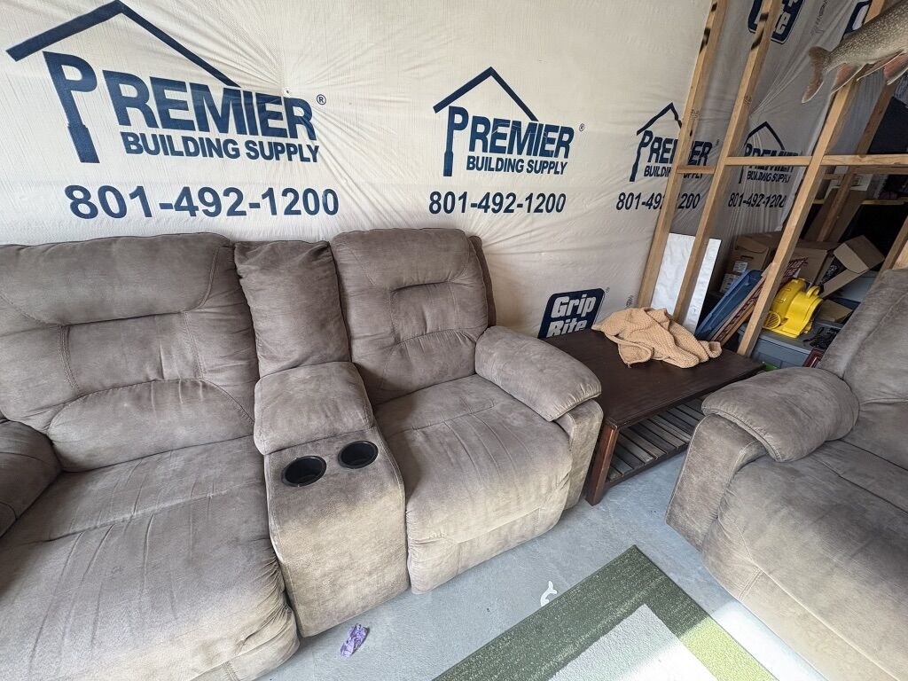 Both sofa and loveseat recline! The loveseat has storage in the middle as well as cup holders. The material is microfiber. Comes with coffee table and end table for an additional $50. Sofa and loveseat combo-$150 OBO We need these gone as soon as possible! We will be moving and do not want to take them with us.