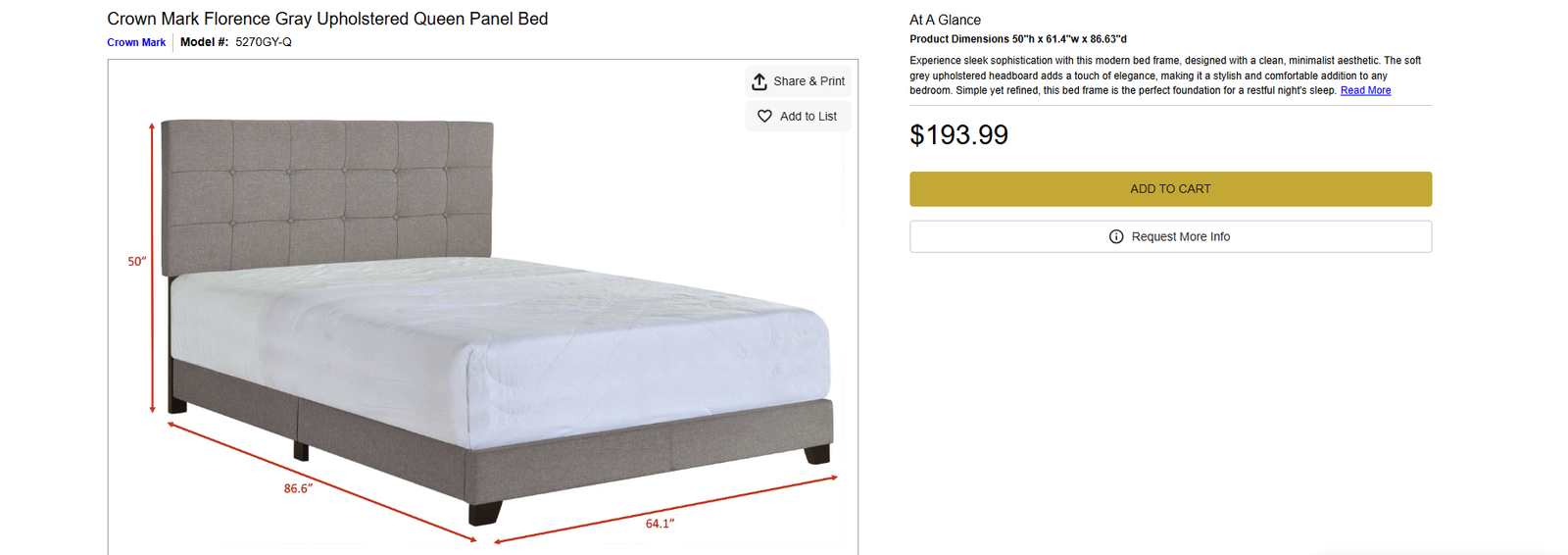 VenmoNew in Box- Crown Mark Florence Gray Upholstered Queen Panel Bed. Bought in 2020 and never opened. Has been sitting in garage ever since. New it costs $200-250. Asking $85 OBO