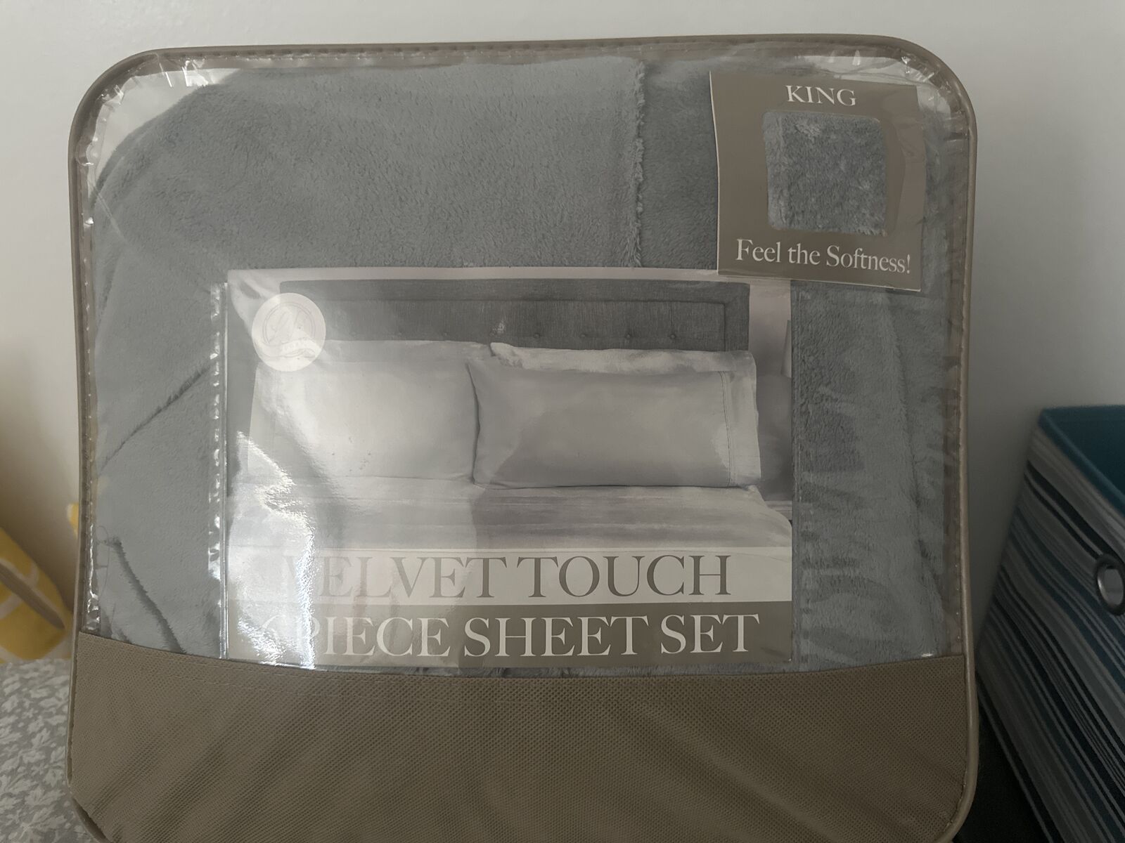 King size 6 piece sheet set very soft and comfortable two set gray and light green Regular price is $55