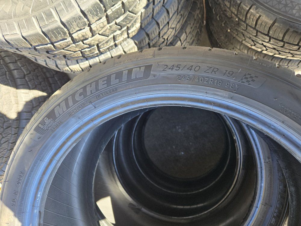 MICHELIN PILOT SPORT ALL SEASON Size is 245/40ZR19 Like new with 80% tread. DOT 2024 Price for all 4 5 * tire disposal fee each.! Free mount, balance, and brand new valve stems . 90 day financing available through Acima, message for details. Also make sure to check out our google reviews just search “Oliver tires” We carry a lot of other tire sizes new and used. As well as used and new wheels. If you have any questions call or text. Espańol; 8016885139 Office: 8016620227. Or visit us at 3010 west 500 south. Salt Lake City Utah. Shop #11