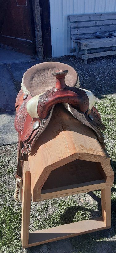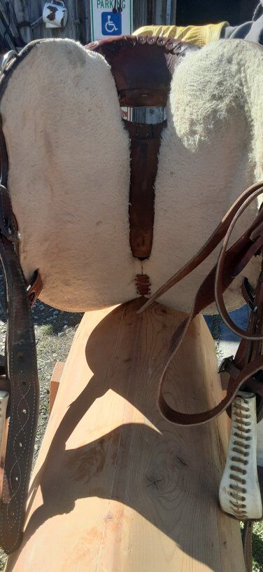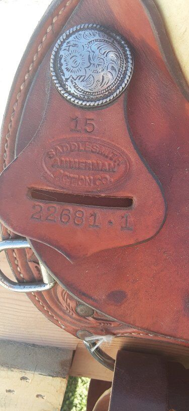Ammerman 15 in seat 22 in skirt 71/2 gullet. Nice rawhide details.
