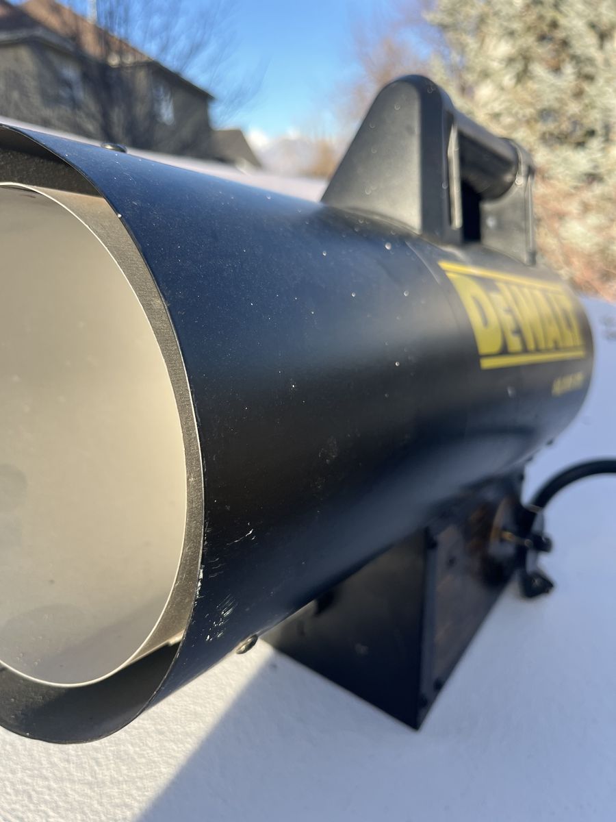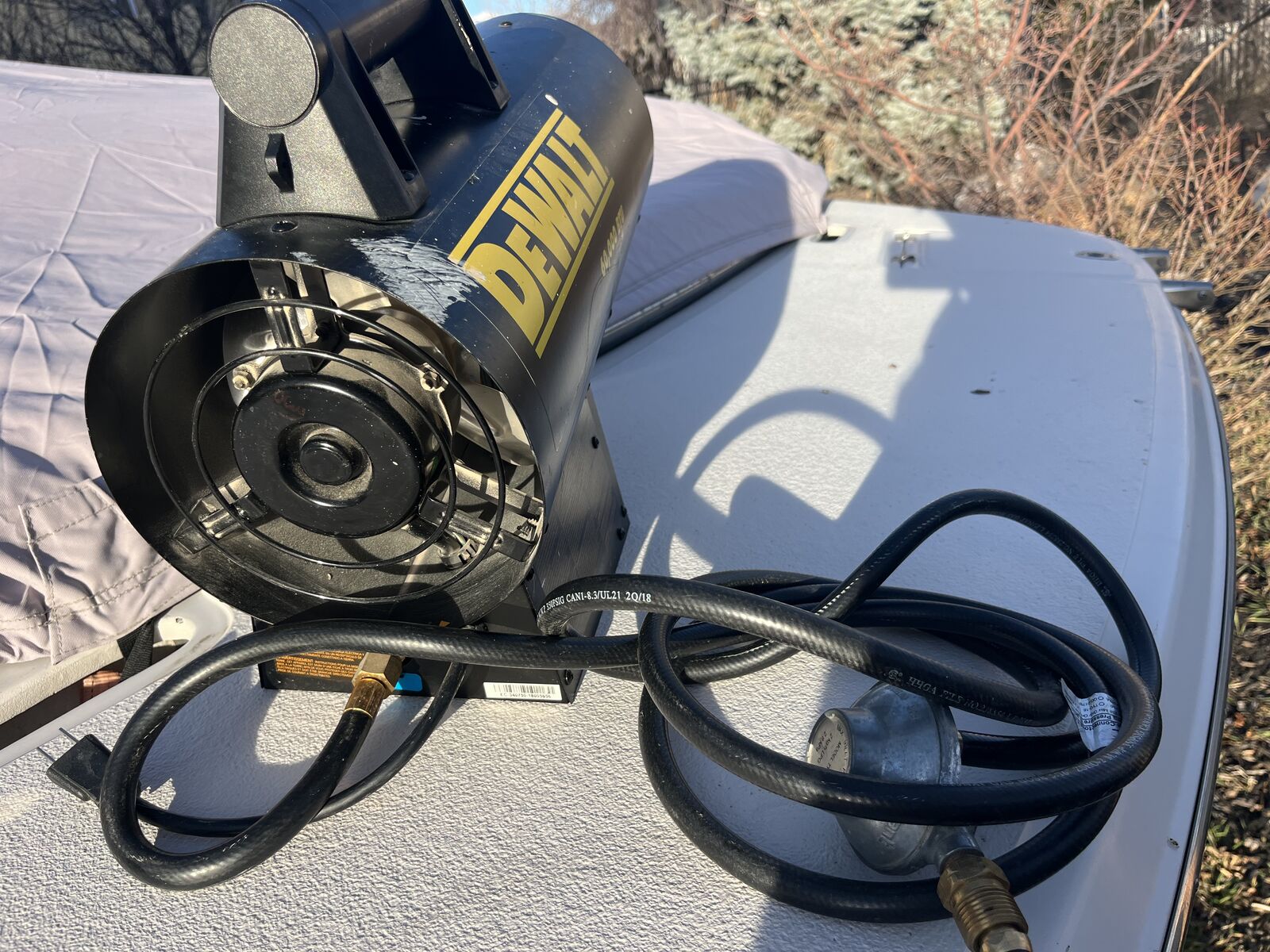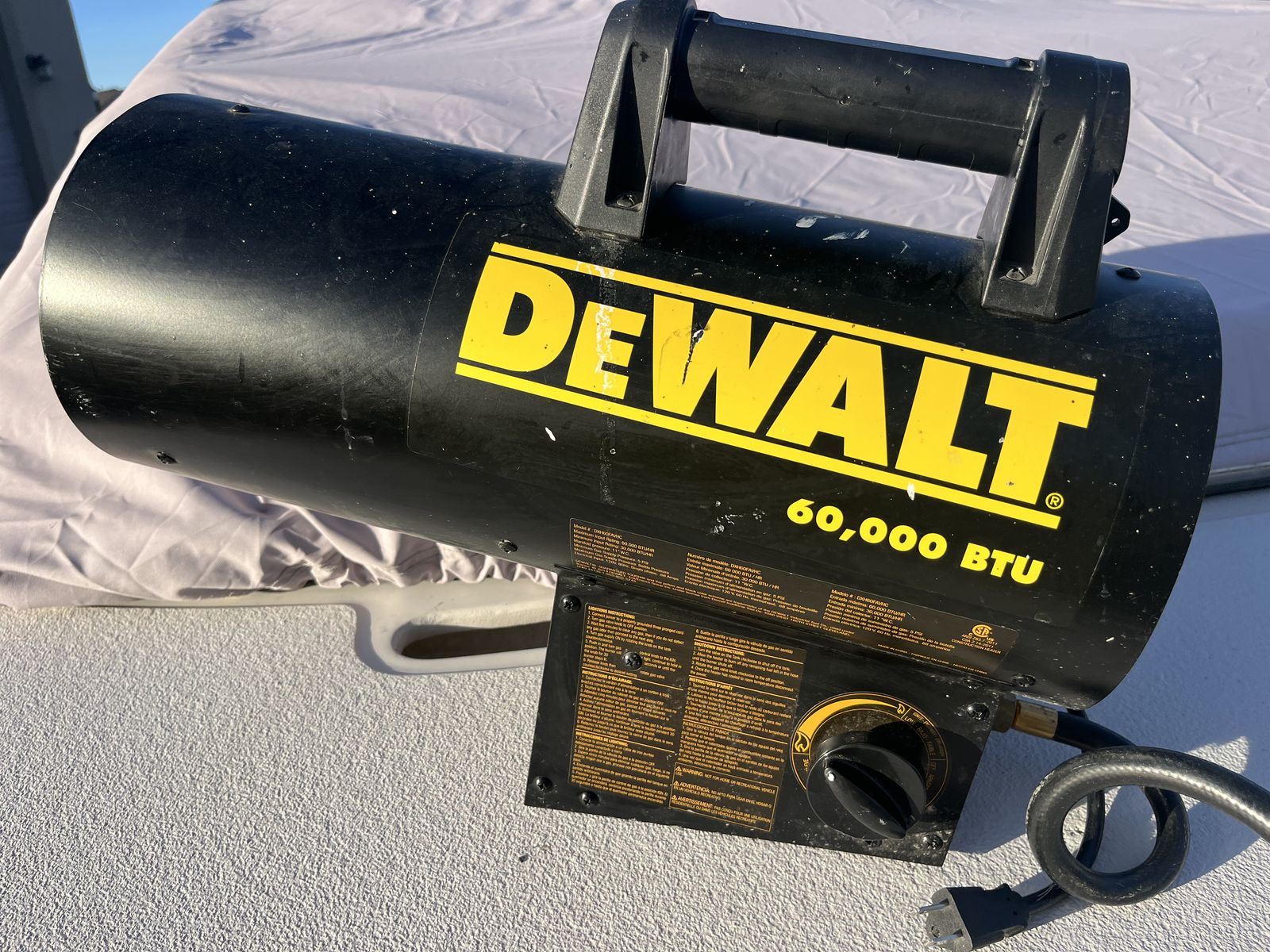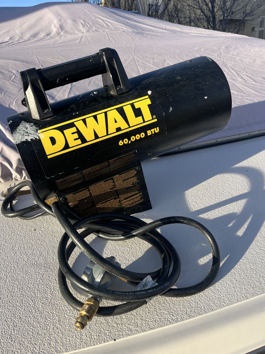 DeWALT Portable Forced Air Propane Heater with propane line, attachments