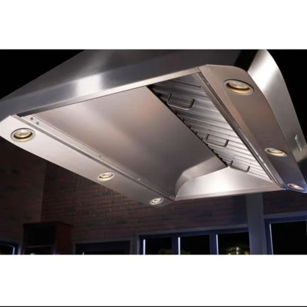 Zellebrand new never been used still in the box Island Chimney Hood with Optional Internal/In-Line/External Blower, 4-Speed Push-Button Control, Halogen Lamps and 3 Evolution Baffle Filters: 42-Inches, retails online for over $3,200!