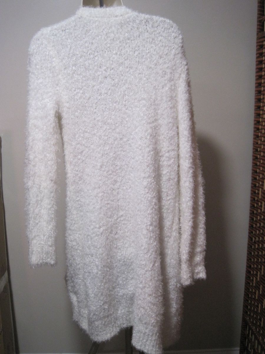 The It's Our Time Women's Large White Furry Knit Polyester Open Front Long Sweater is a stylish and cozy cardigan ideal for the winter and fall seasons. Made with a soft and luxurious blend of fur and polyester, this knit sweater features a solid white color, long sleeves, and an open front design. Perfect for casual or travel occasions, this sweater offers a regular fit for a comfortable and flattering look. Machine washable for ease of care, this sweater is a versatile and chic addition to any woman's wardrobe.