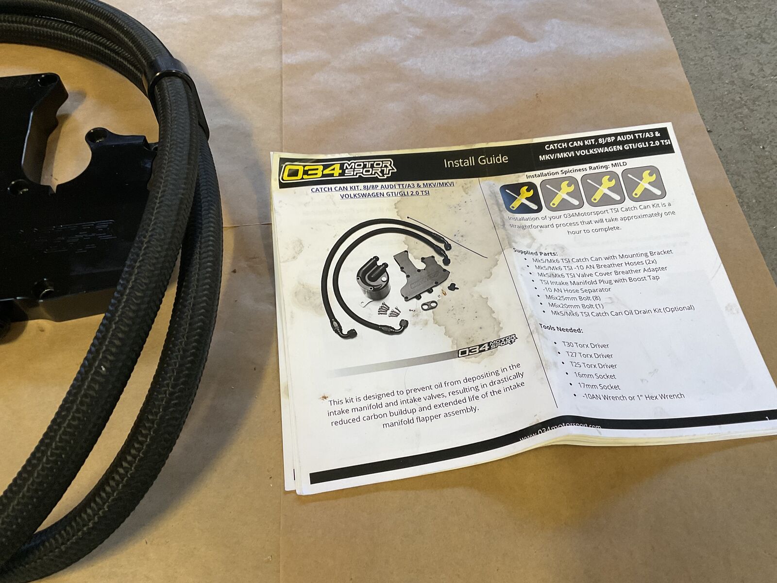 For sale: 034 Motor Sports Oil Catch Can. This fits VW Audi 2.0 liter turbo engines. These sell for over $600 online. Complete kit easy to install with instructions.