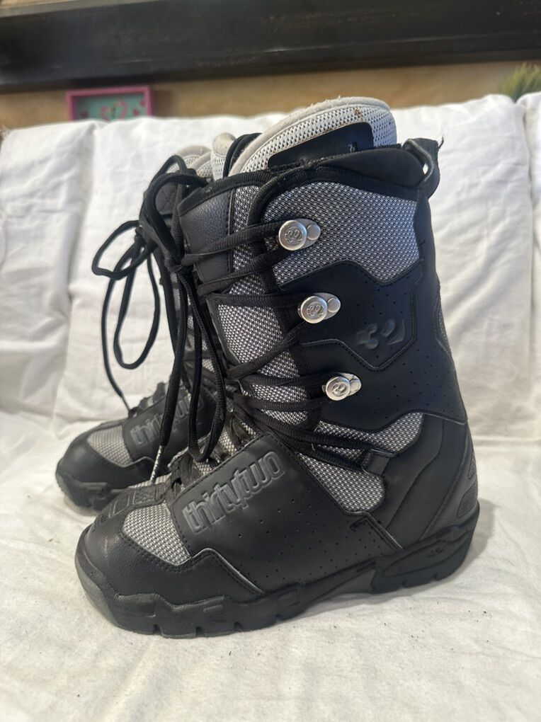 Thirtytwo women’s size 8 black and gray leather and textile lace up snowboard boots. These are in good condition, see photos for details. I take cash or Venmo, but cash is preferred. Text is best. 801-201-4446. Check out my other ads for additional sizes and styles.