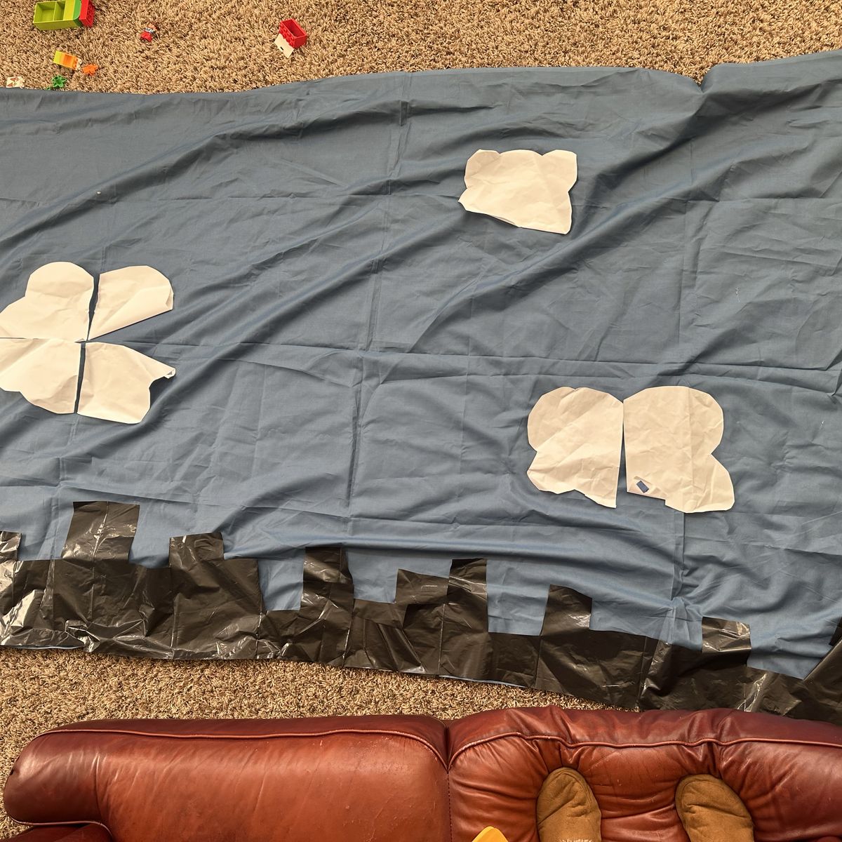 This 9’x5’ backdrop is perfect for a superhero photo shoot! All you have to do is attach it to the wall 4-5 feet off the ground and allow the rest to drape onto the ground in front. Have your child stand on the backdrop with arms raised and take the picture. Turn it sideways to make it look like they are flying. It can be fixed up to look really nice if someone wanted to. Perfect for superhero themed parties!