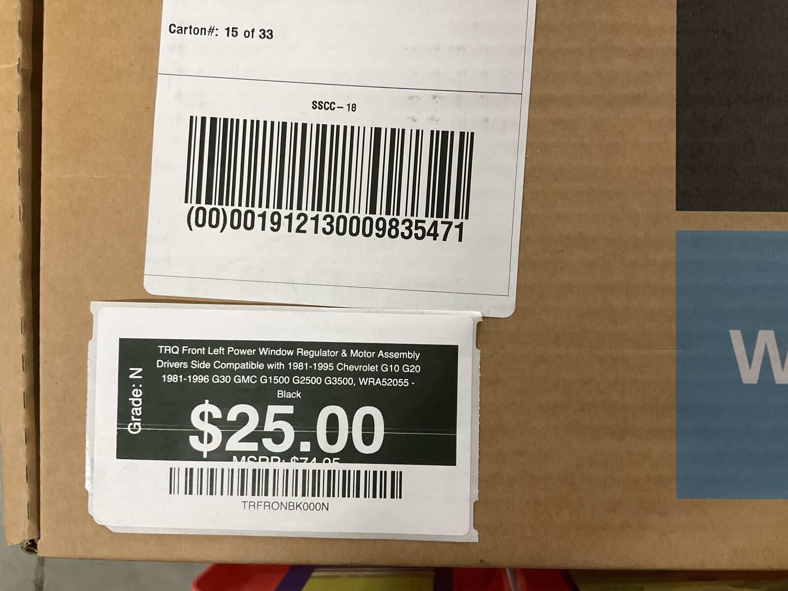 ApplePayTRQ Front Left Power Window Regulator & Motor Assembly — driver’s side replacement compatible with 1981–1995 Chevrolet G10/G20 and 1981–1996 GMC G1500/G2500/G3500 (WRA52055-Black). Our price $25 — MSRP $75!