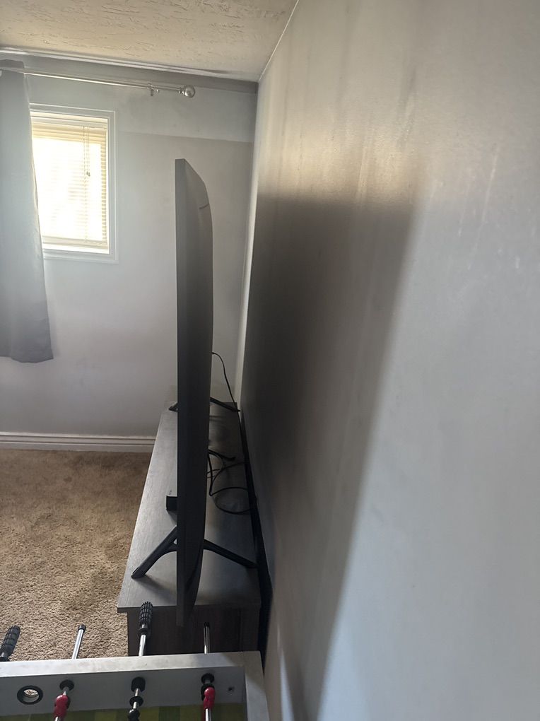 80 inch Samsung Smart TV with a sound bar and a TV stand there is no remote, however