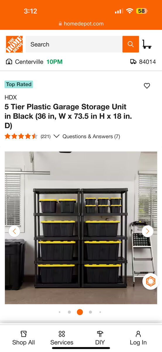 VenmoSelling an HDX 5-Tier Plastic Garage Storage Unit in black — sturdy, durable shelving perfect for organizing your garage, basement, laundry room, pantry, or storage area. Great for holding bins, tools, boxes, and more!
