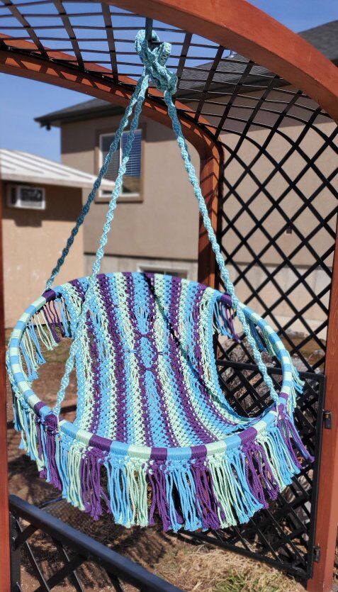 Key Features: Intricate handwoven macramé design featuring elegant fringe details and a supportive, net-like seat that gently cradles you. Sturdy metal ring for even weight distribution and easy hanging.