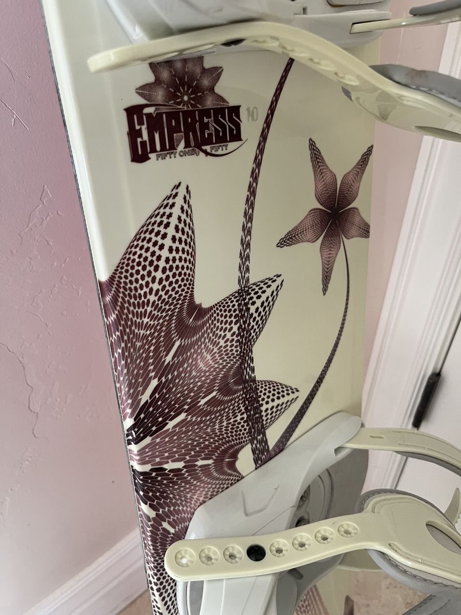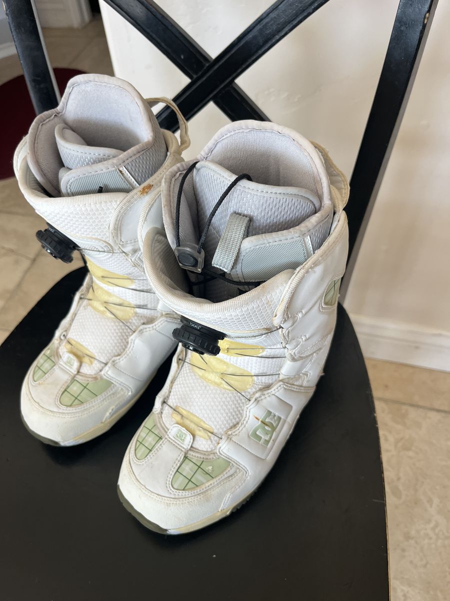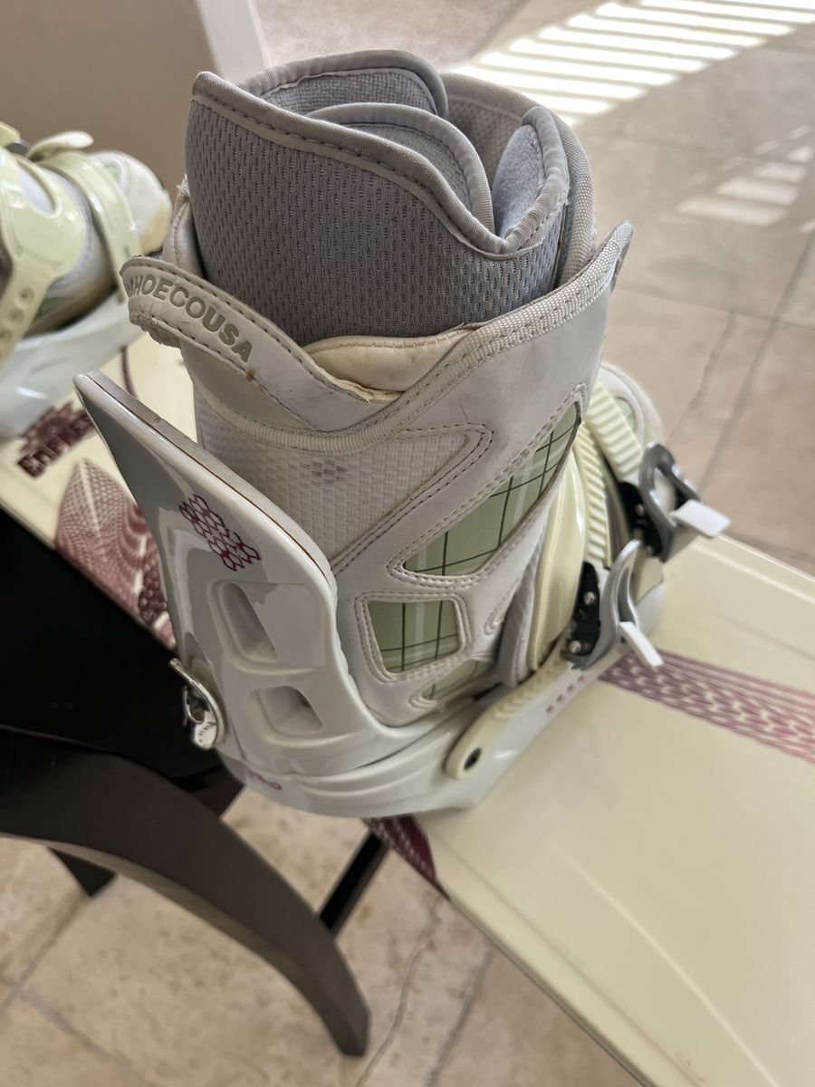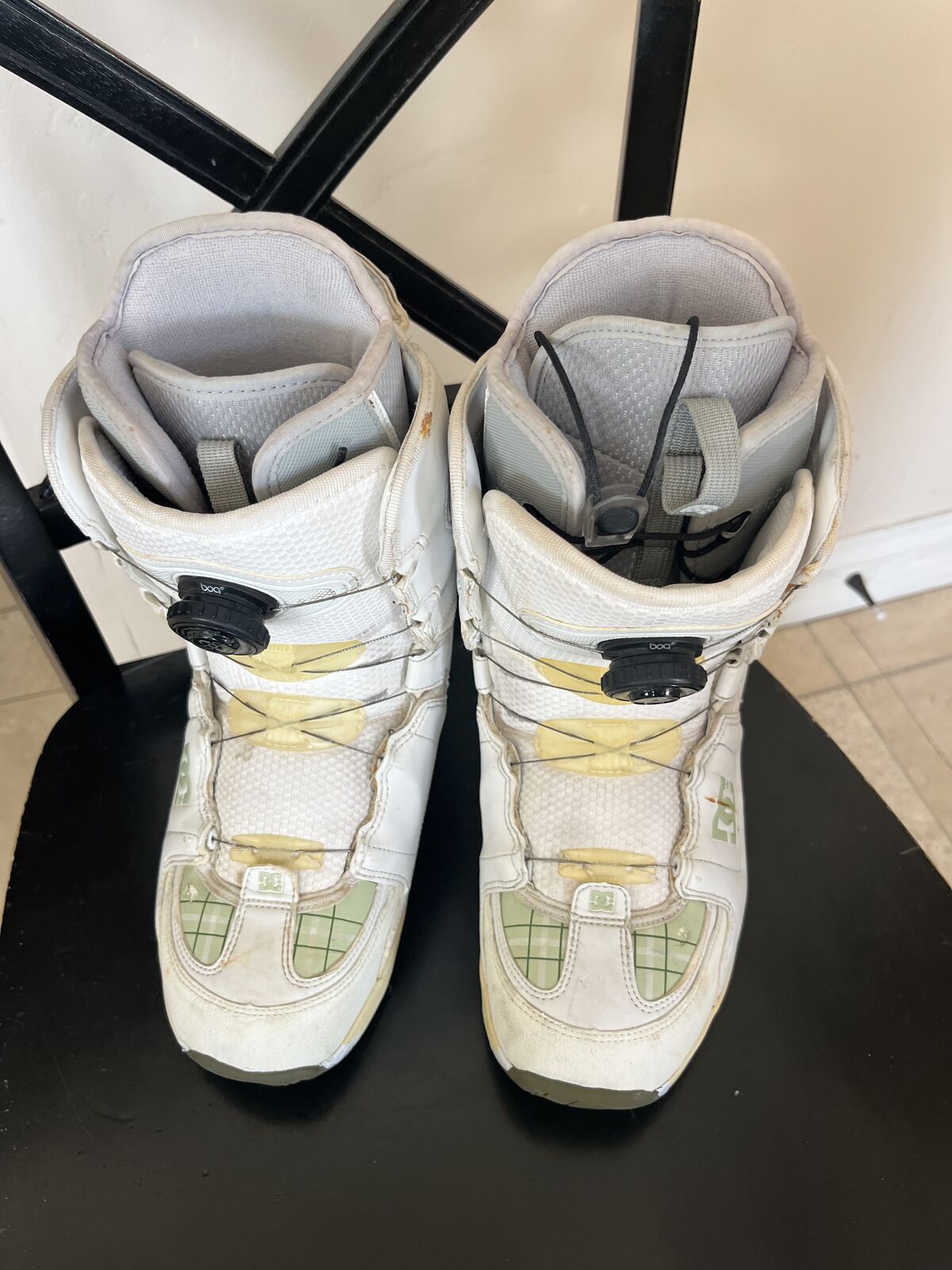 Little Use 140 CM snowboard with medium 5150 bindings on a Impress 5150 white snowboard with pink underside, check pictures for more details.DC BOA size 8.5 L snowboard boots, little use as well. Located in Saratoga Spgs I do have other snowboards and boots available, helmets, goggles, and gloves.