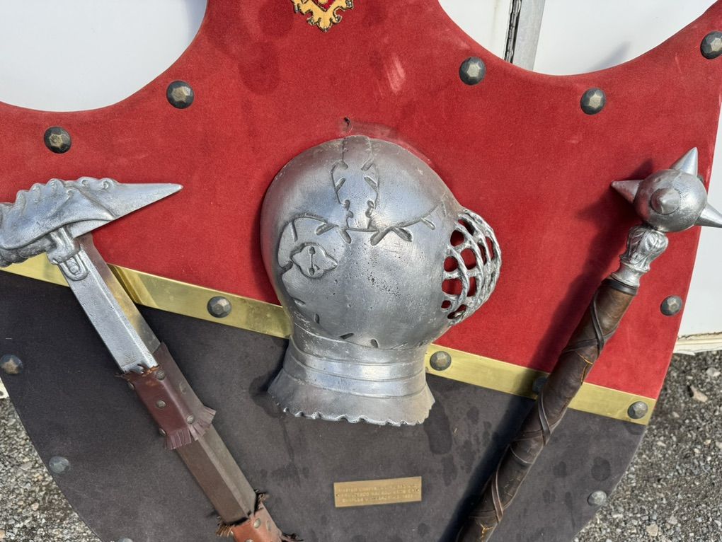 Made in Italy. Large 41” tall and 30” wide shield. Very cool and unique. Has a brass plate. First $75 cash gets it. Text only 801-979-0820