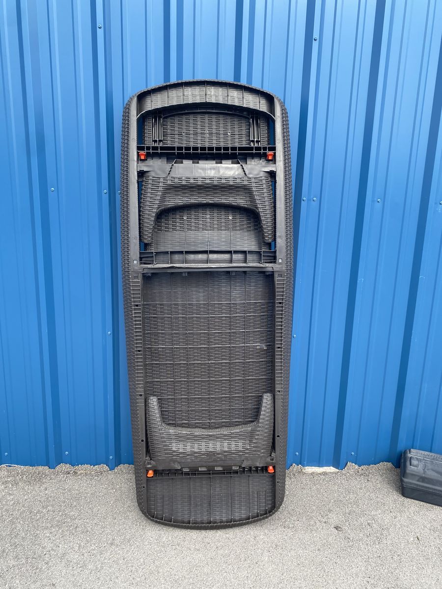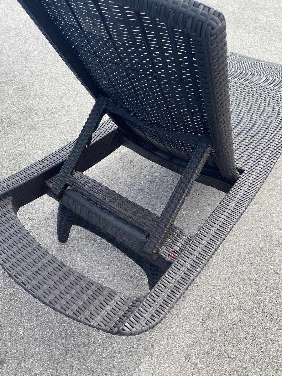 Features: • Weather-resistant wicker style • Adjustable backrest • Lightweight but sturdy • Folds flat for easy storage • Neutral dark brown color