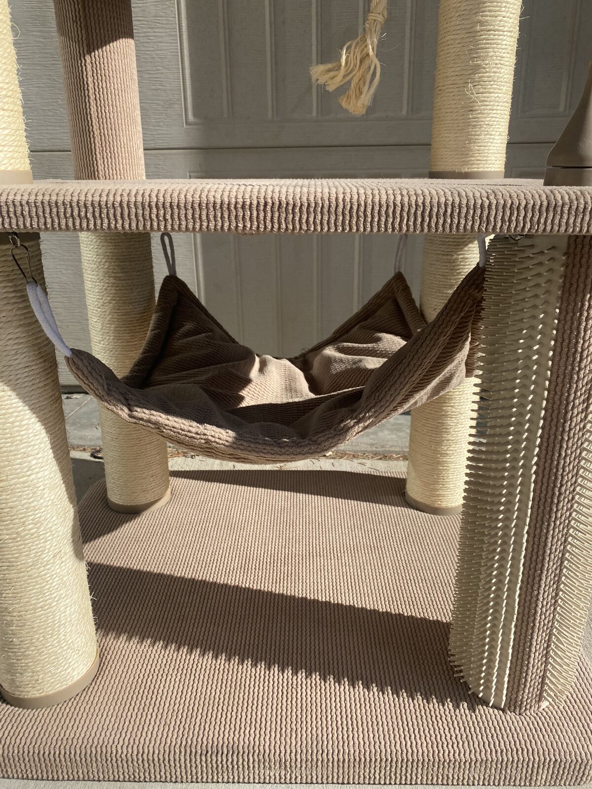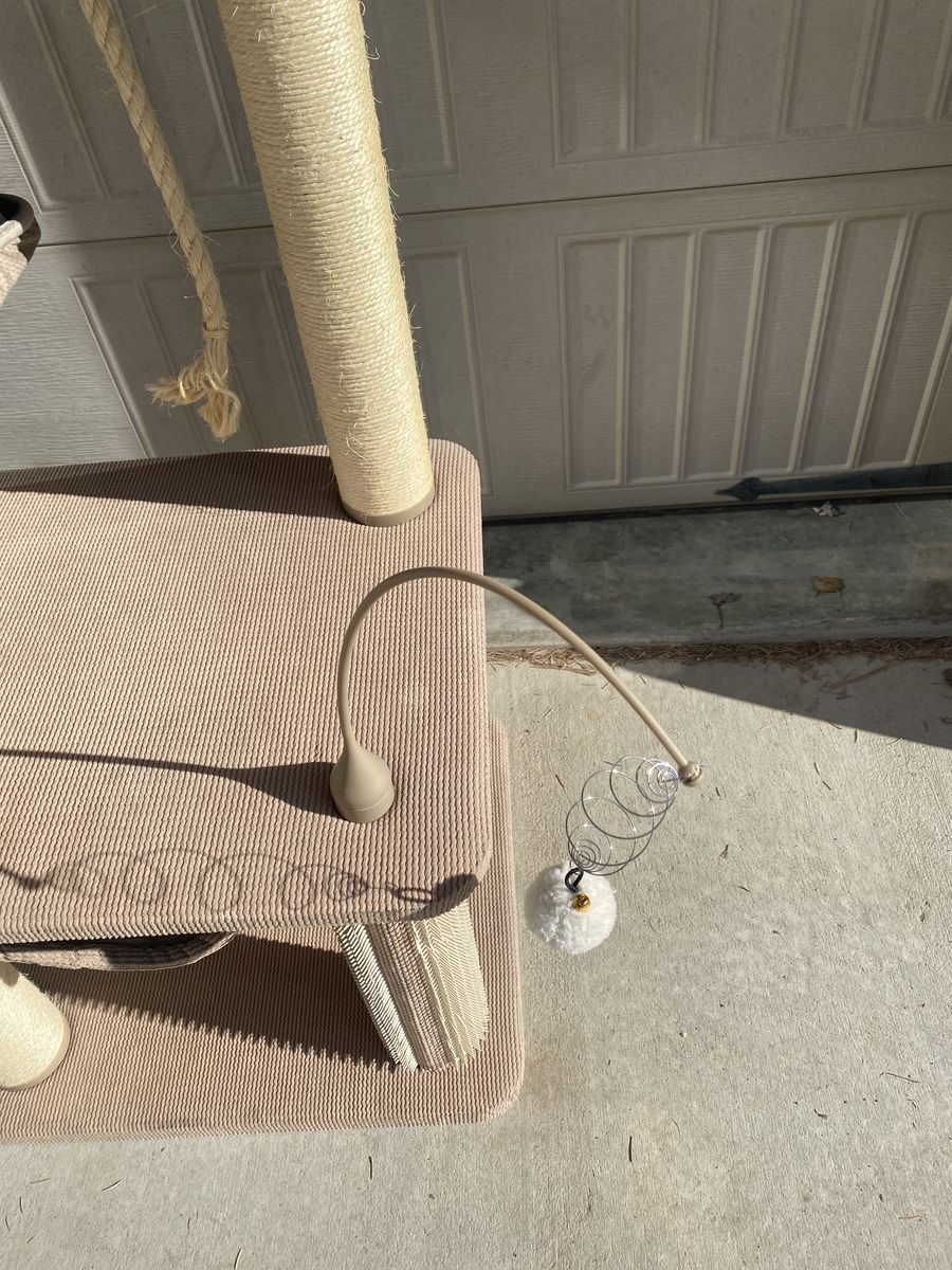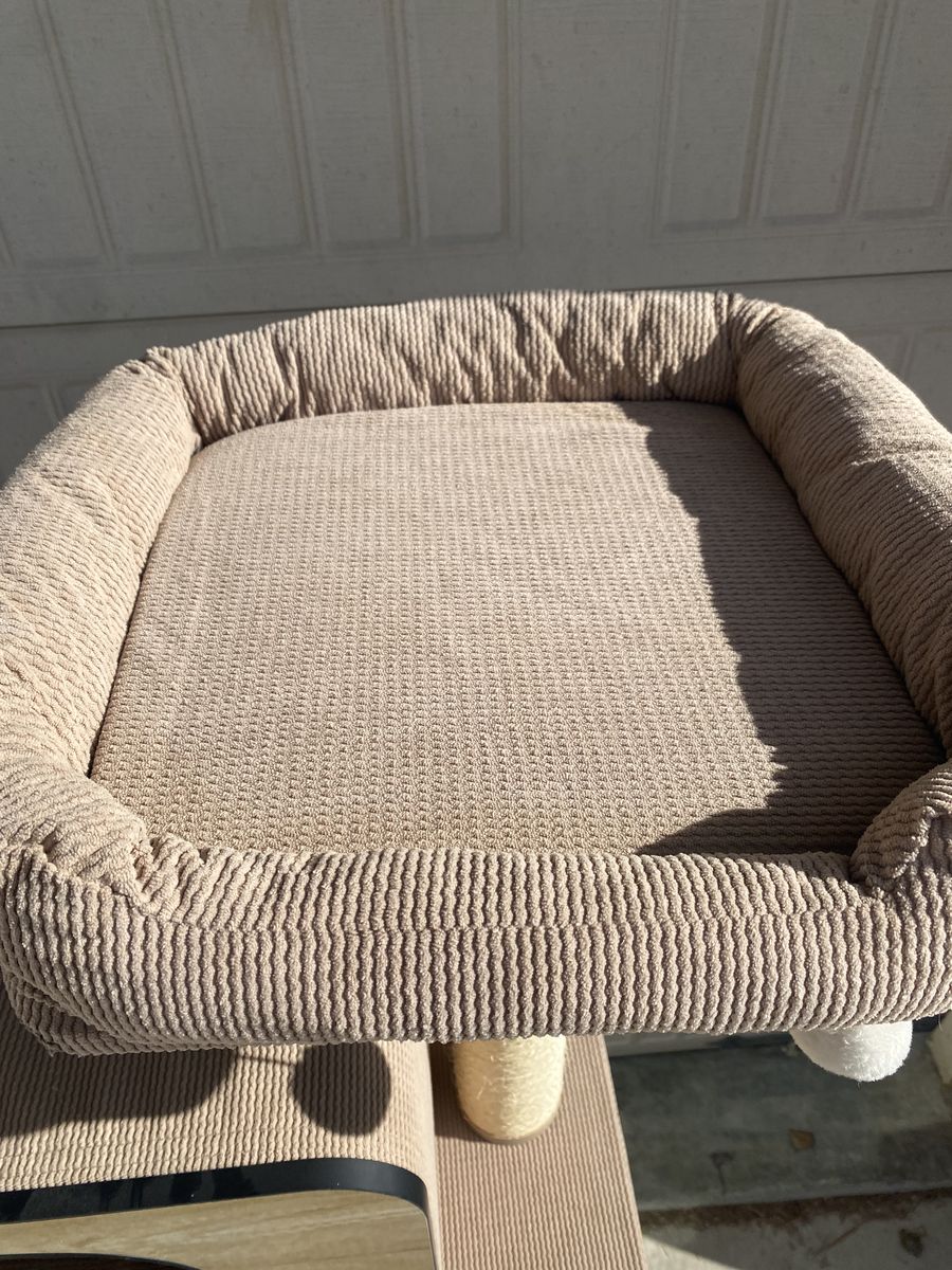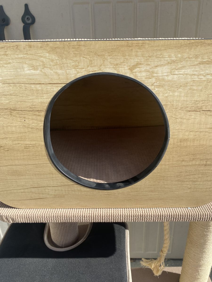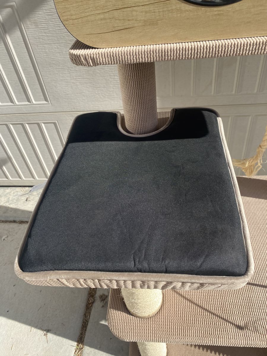 Neutral beige/tan color that looks good in any room. Very sturdy and perfect for climbing, scratching, and lounging. Very clean.