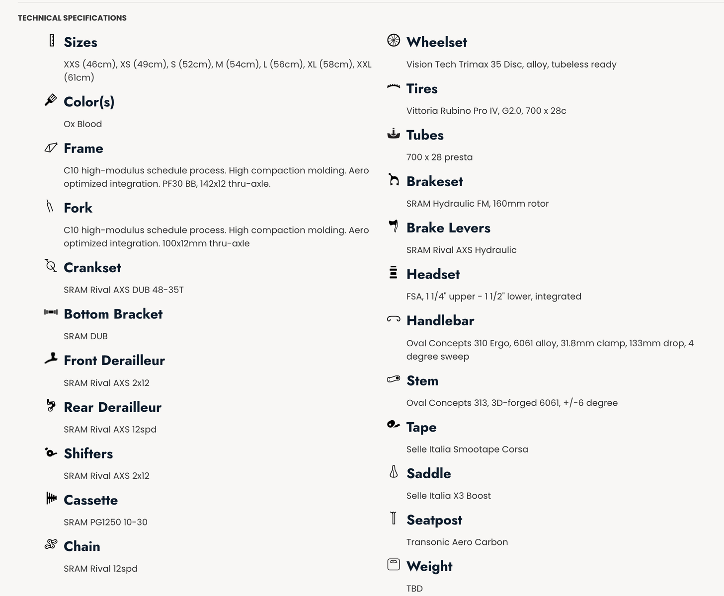 Sizes currently available: X-Small (49cm), Medium (54cm), and Large (56cm)