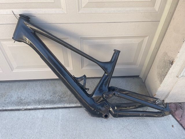 ApplePayThis is an XL 2023 Scott Genius 920 carbon enduro frame in good shape; it's been ridden but also well maintained. The Scott/Fox Nude in the rear was serviced recently.