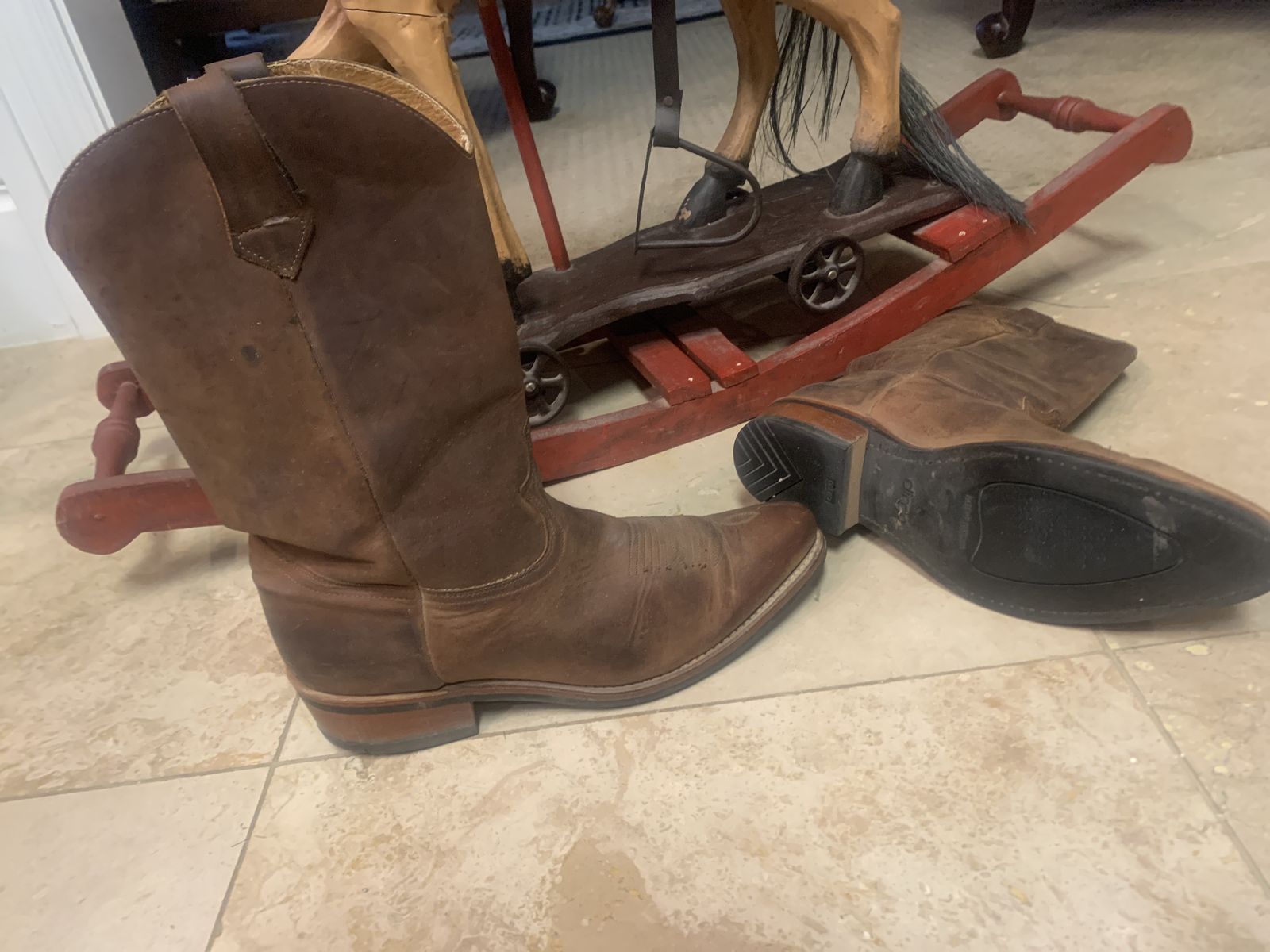 Dingo brown brushed calf skin cowboy boots. Size 12 D. $75. Used. Original soles.