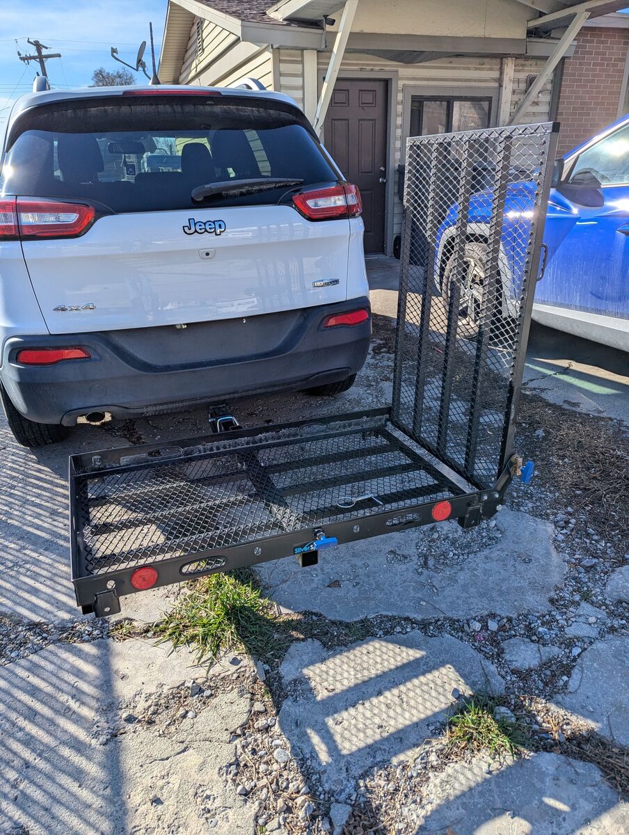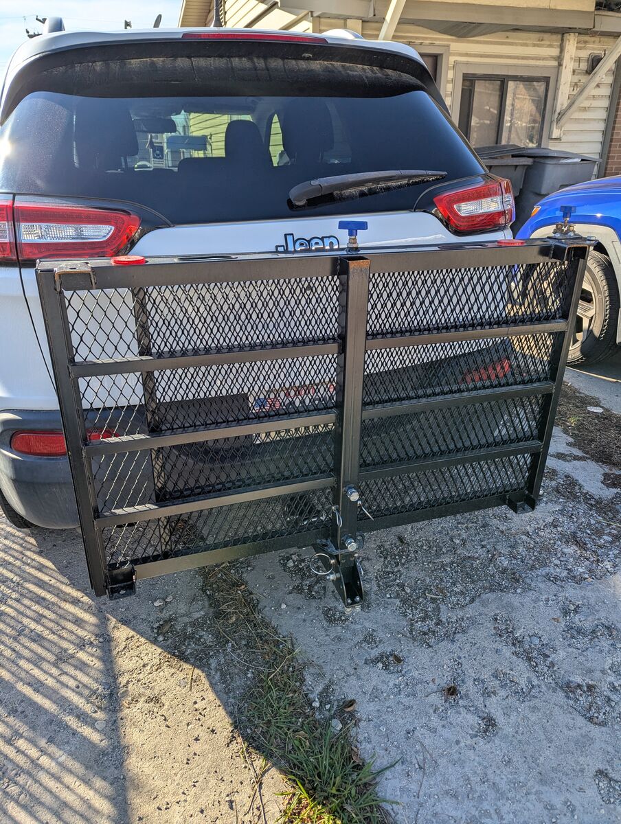 Max weight 500 lbs. Used for only a year. Held my wife's Jazzy EVO 613 just fine on several trips to Salt Lake. This lift is manual, it does not move up/dn. The chair is loaded from the ramp.