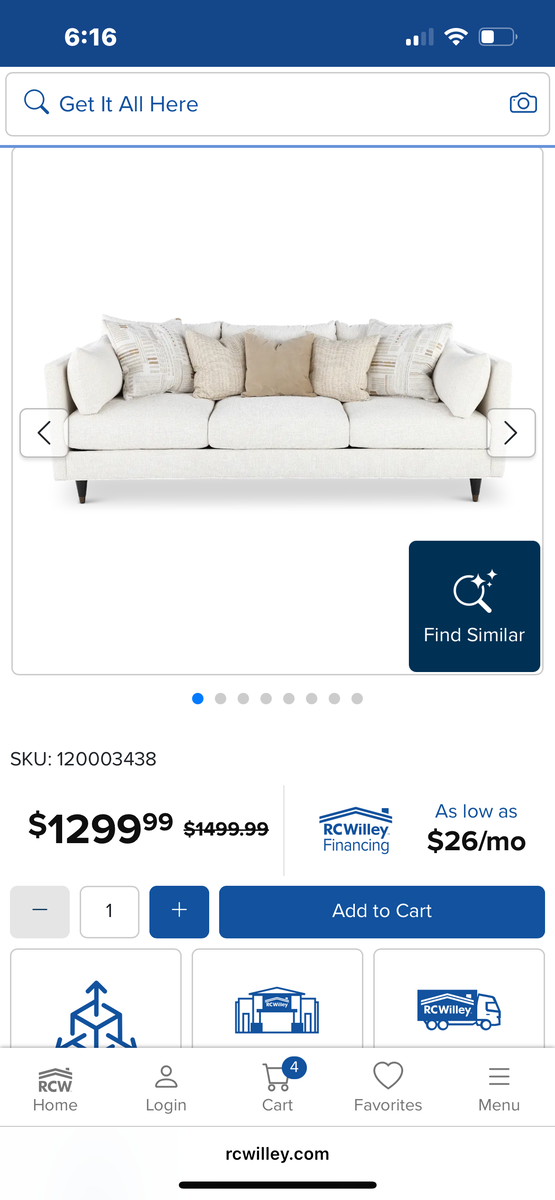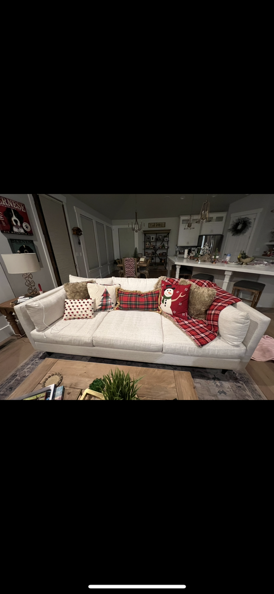 Nice contemporary deep seated sofa. Still looks like new. Performance fabric, cleans easily & repels liquid. Pillows not included In pics.