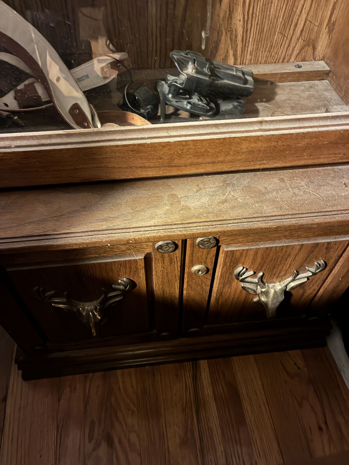 Absolute perfection. This gun cabinet is about 40 years old or more. 71" tall 25" wide 13" deep. I have the keys. Would make a nice piece for showing off some rifles.
