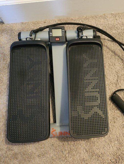 VenmoSunny Health & Fitness compact foot stepper in great condition. This is a sturdy, space-saving piece of equipment that’s perfect for low-impact cardio at home, especially if you don’t have room for larger machines. It includes arm resistance bands with foam grips and a digital monitor that tracks reps, time and calories. The display has a brand new battery replacement so it's ready to use. Everything else works as it should. The stepper is solid, clean and shows only light cosmetic wear from normal use. Non-slip foot pedals and a stable base make it easy to use while watching TV or fitting in short workouts throughout the day. Great option for beginners, anyone getting back into movement or someone looking for a compact fitness solution.