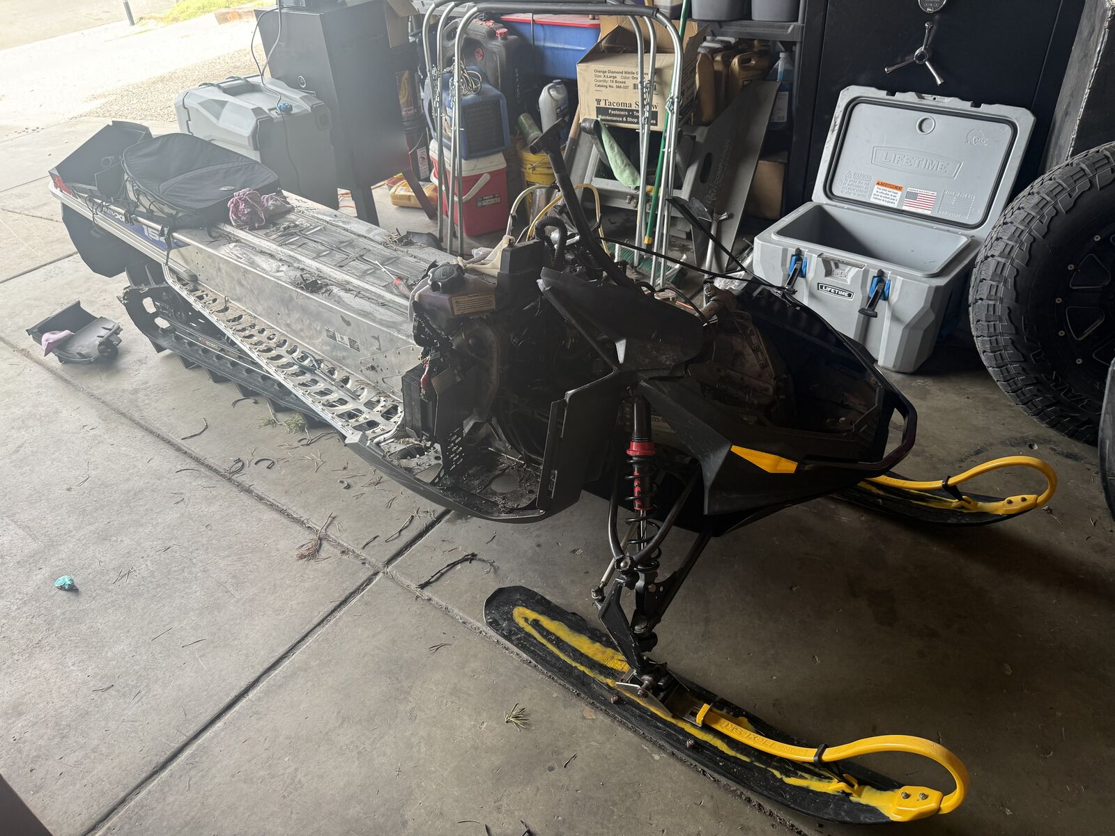 Parting out my 2009 Skidoo Summit 800. Kid smashed it into a tree and it more than I wanna fix. It’s got an almost new (500ish mile) 154X3” track and upgraded rear suspension with tmotion 36” front end Munster throttle dyno port pipe and can. Also had the team secondary clutch and jack shaft The engine was a crate engine from skidoo put in 2 years has about 800 miles on it. Engine runs great. Make me offers track is for the pitch of the newer sled so it will work on all the newer sleds.