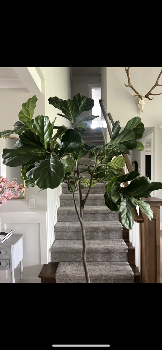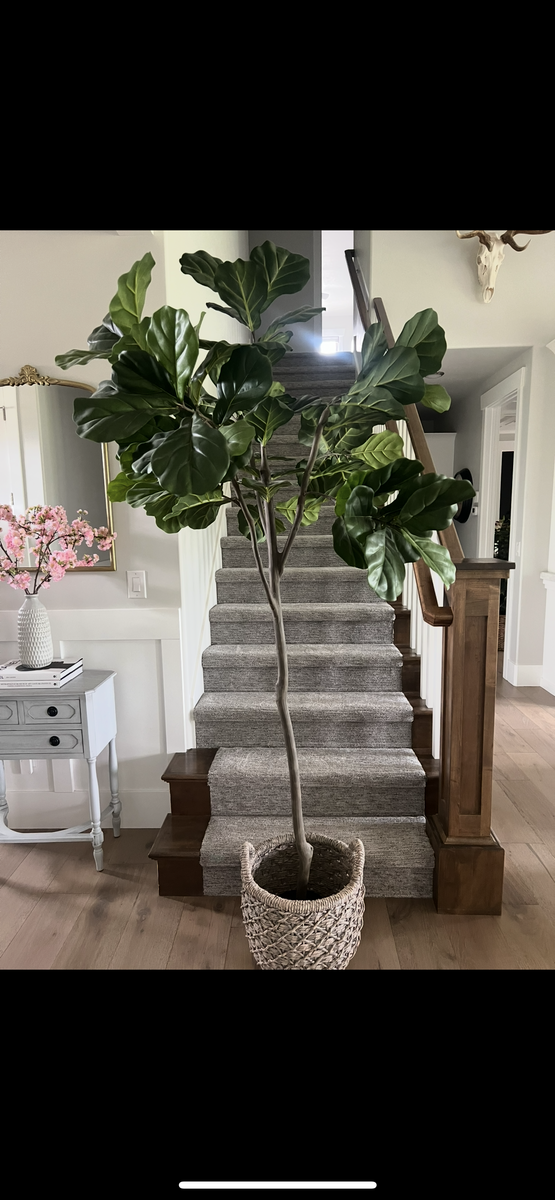 Like new Fiddle Fig tree in decorative basket. Used for staging.