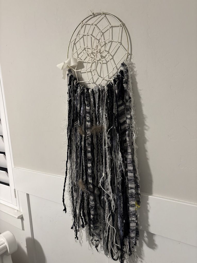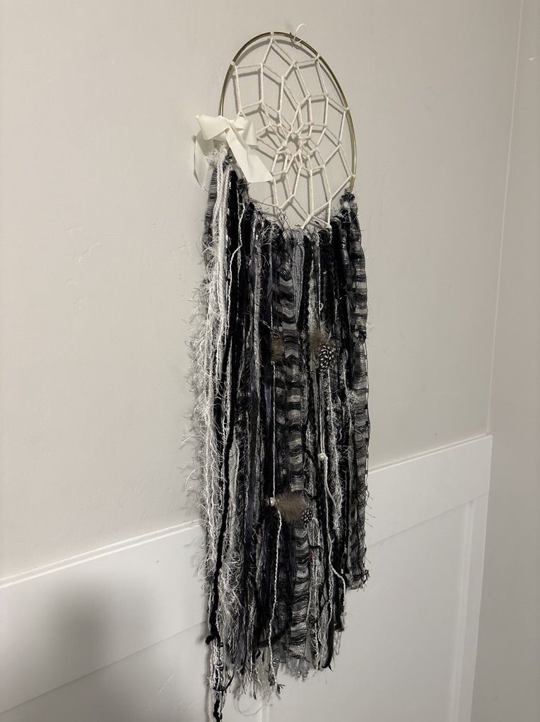 VenmoThis Dreamcatcher made out of metal string, ribbons, feathers and pearls.