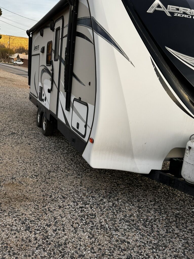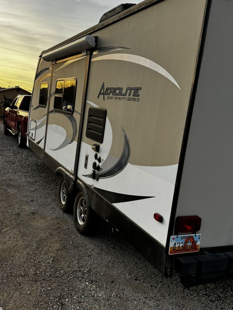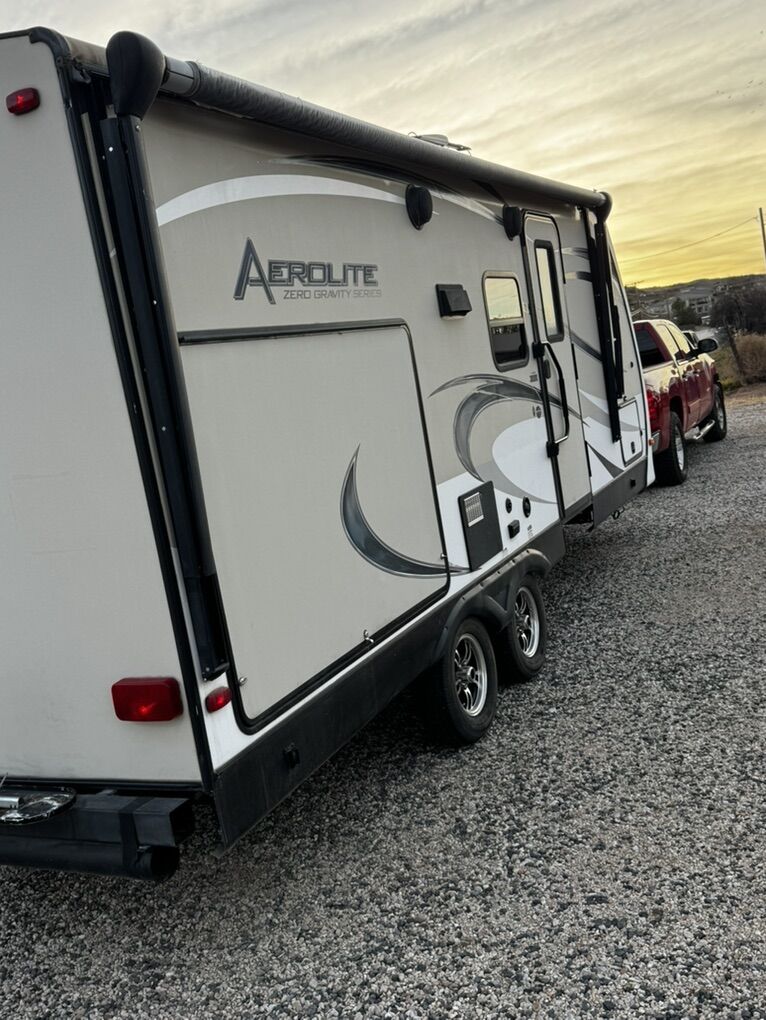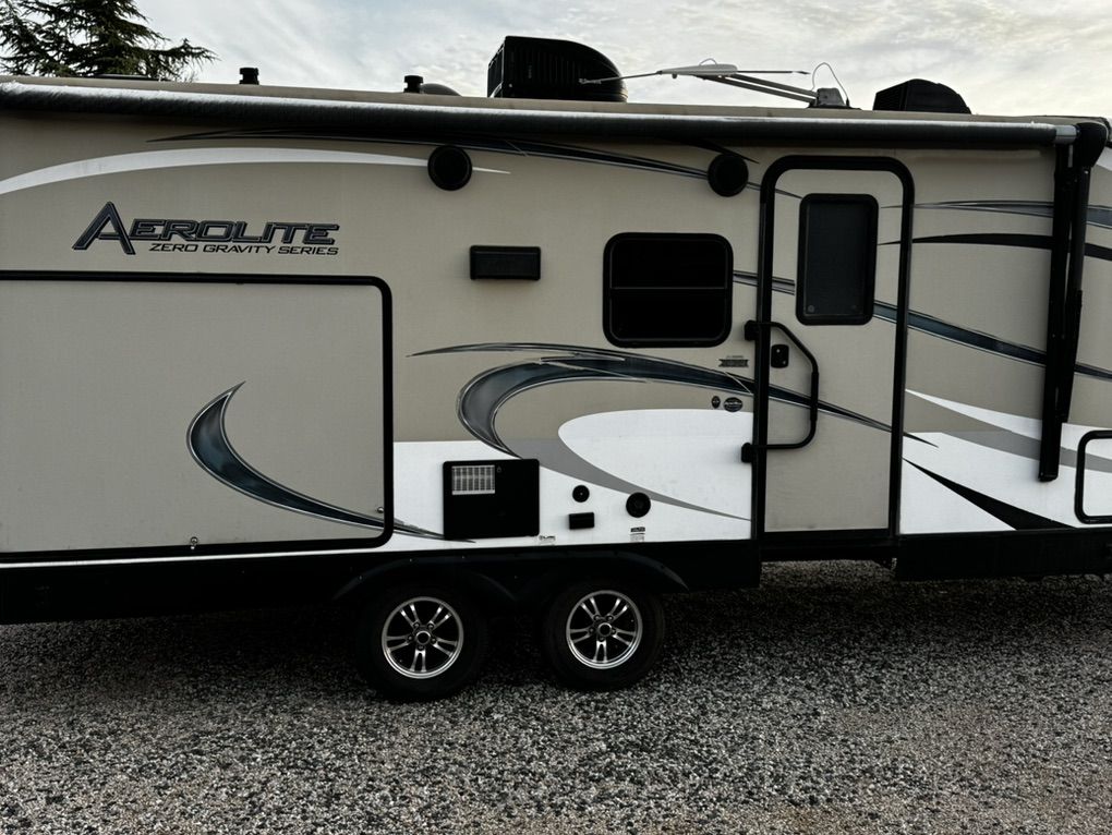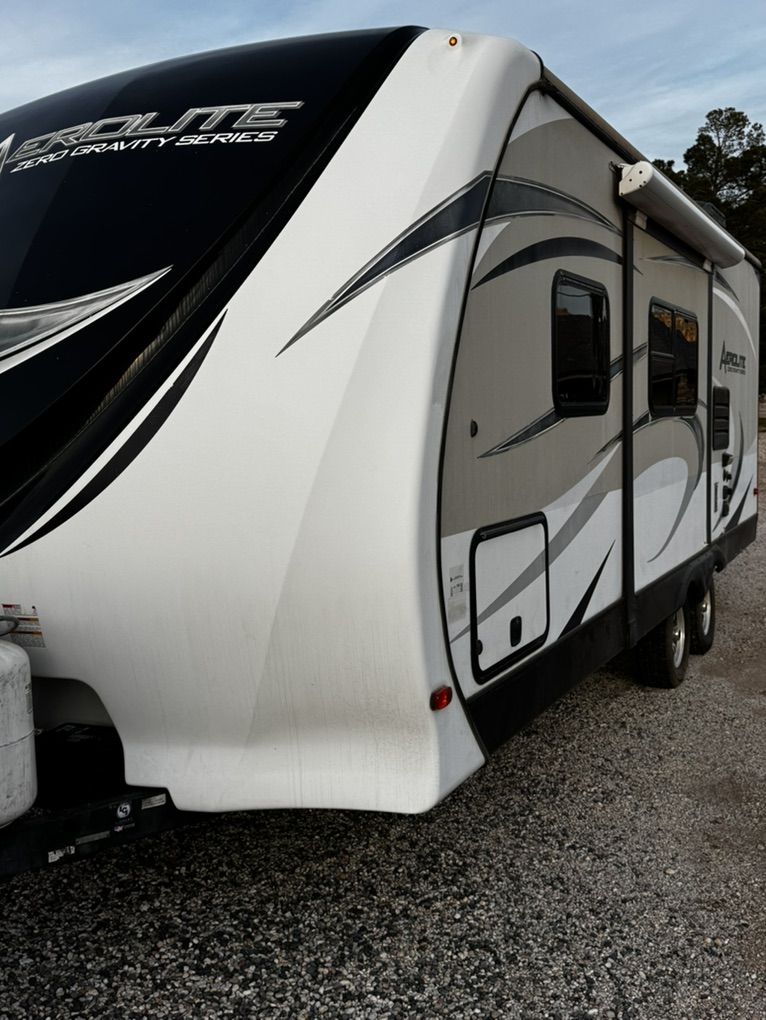 The 2016 Dutchmen Aerolite 213RBSL is a 25-foot (approx.) ultra-light travel trailer from the Zero Gravity series, featuring one slide-out, a rear bath, and a front master bedroom. It typically has a base weight of 5,106 lbs, a hitch weight of 562 lbs, and sleeps 4-6 people. Key amenities include a 13,500 BTU A/C, 52-gallon fresh water tank, and aluminum-framed construction. OBO