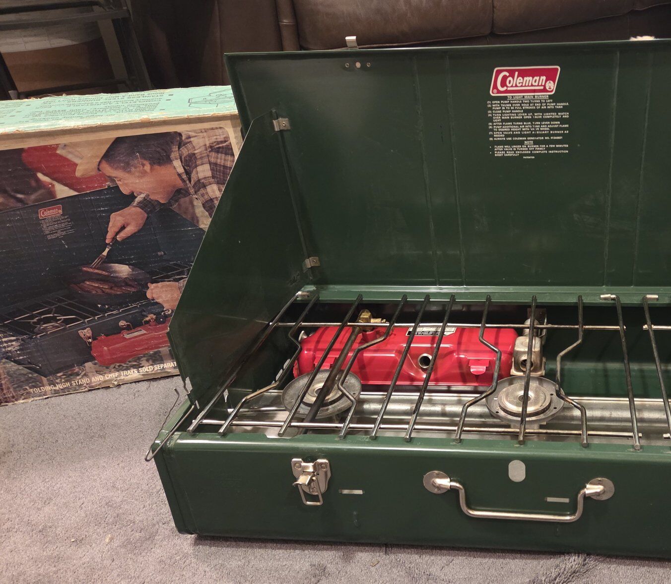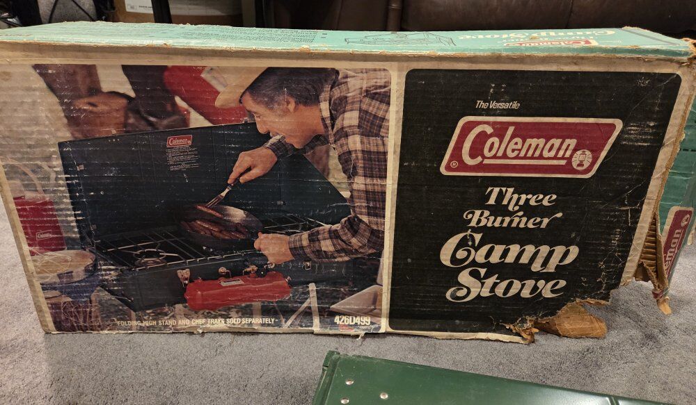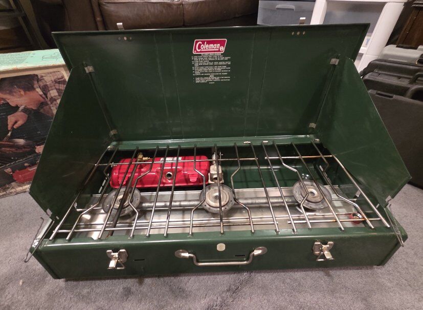 VenmoVintage Coleman 3 burner camp stove. Excellent condition. Barely used. Comes with original box and instructions.