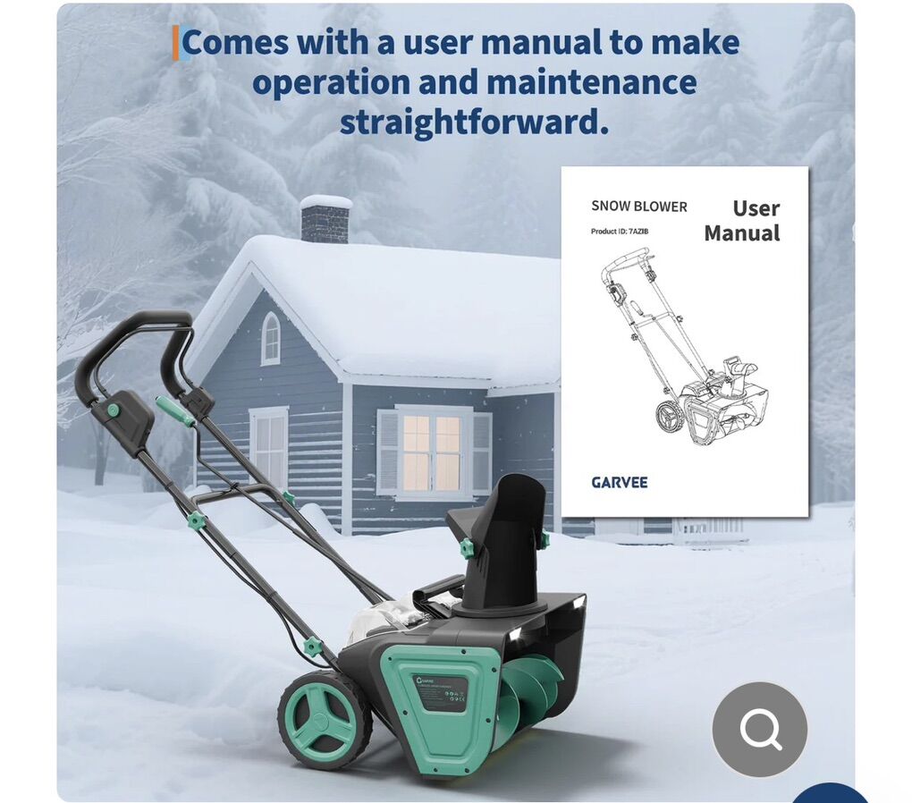Garvee 20 Cordless Electric Snow Blower- 20V 4.0Ah Battery Powerful Motor 19.6FT Throw Distance Lightweight Maneuverable for Driveways Patios Sidewalks