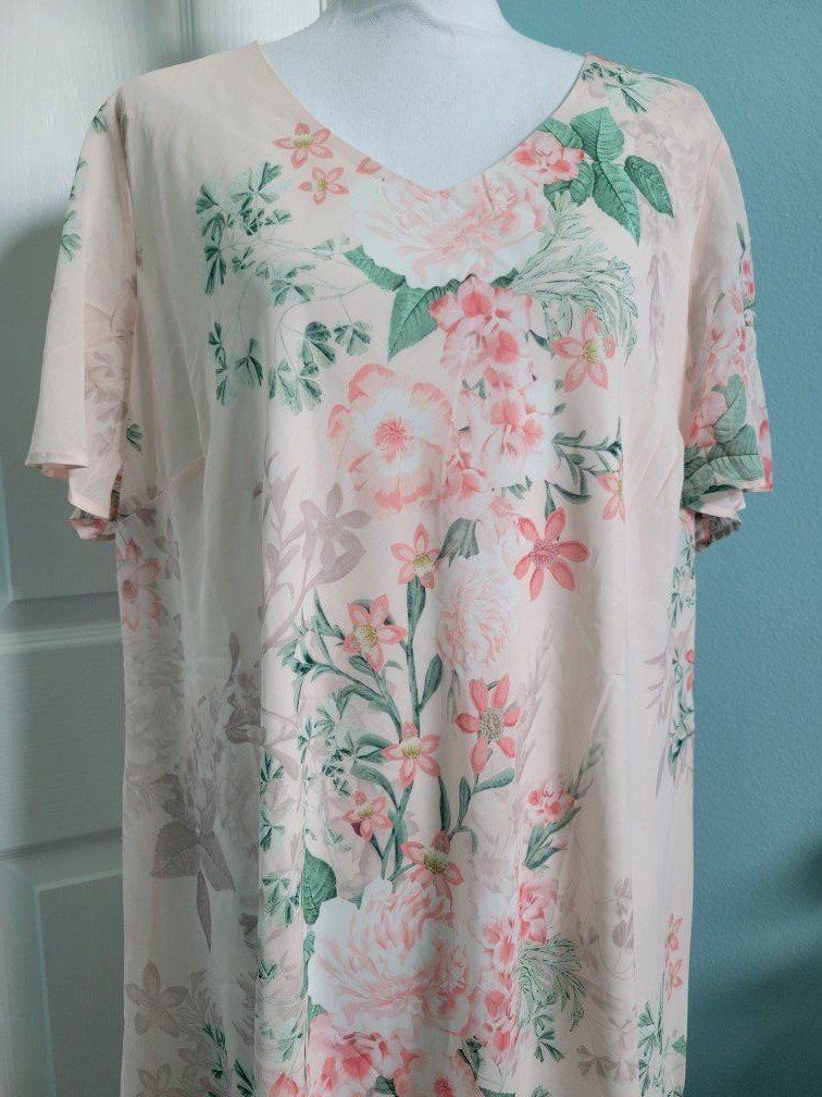 VenmoNew soft blush pink dress. Floral print. Chiffon, lined. sz 2X
