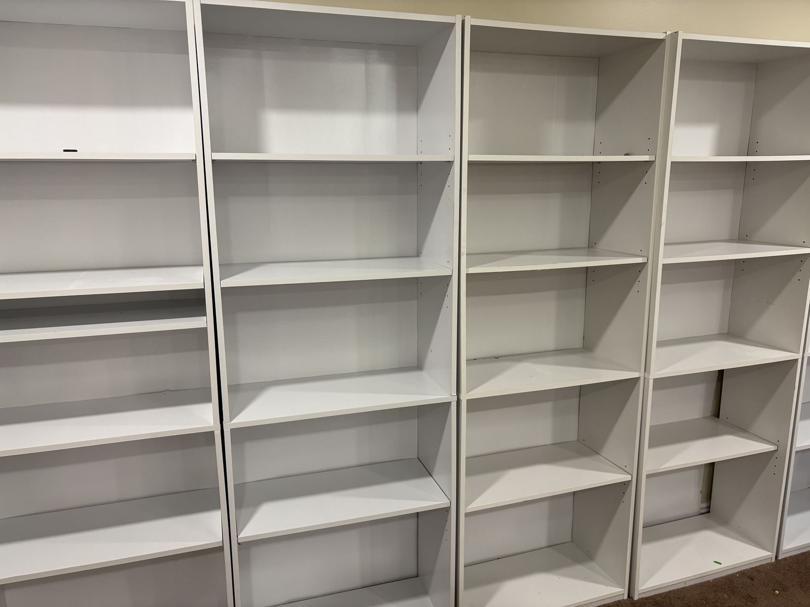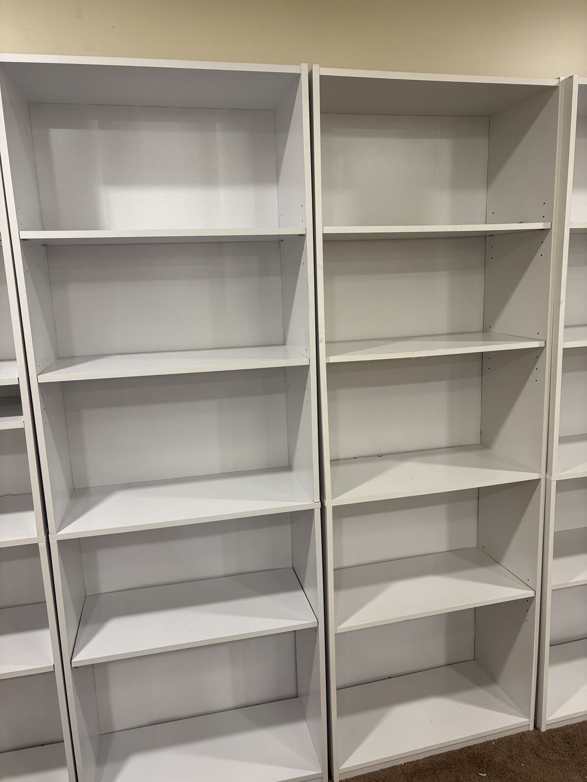 Venmo7 white bookshelves, $20 apiece OBO. 24” x 72”. Want them gone fast.