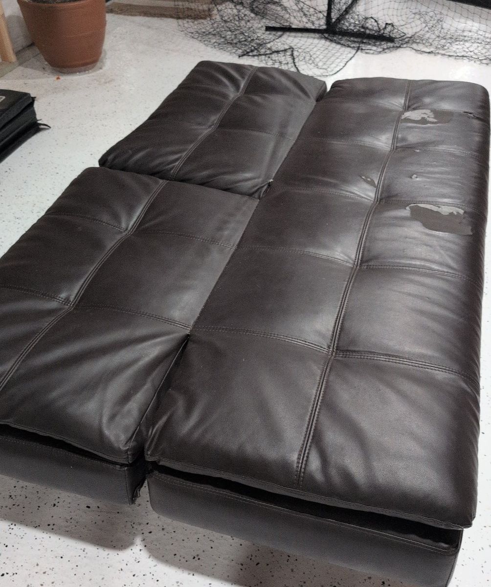 we're just clearing out the basement to get it finished, perfect little couch for like a basement or garage
