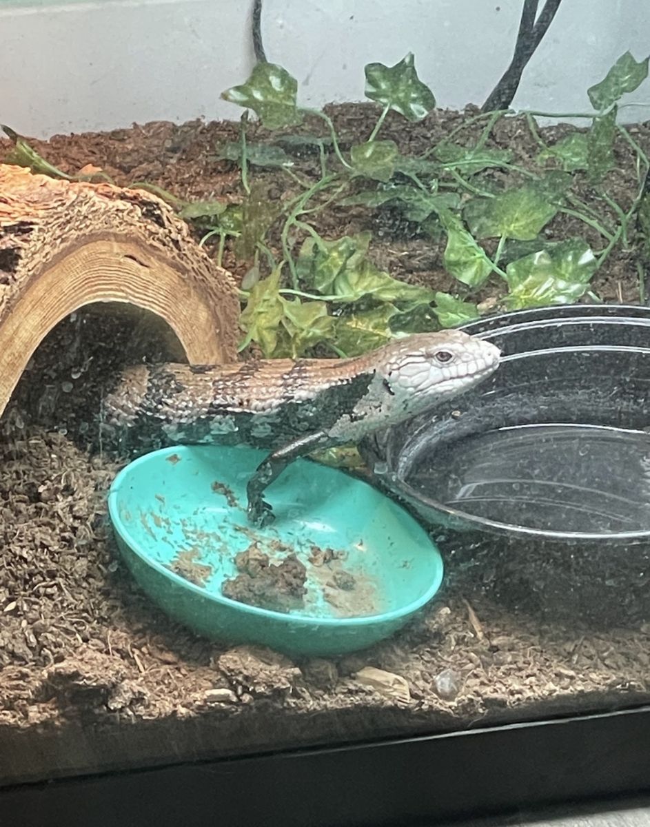 Adult male blue tounge. He’s a bit fussy and is a touch skinny. He eats well for us now, will not come with enclosure.