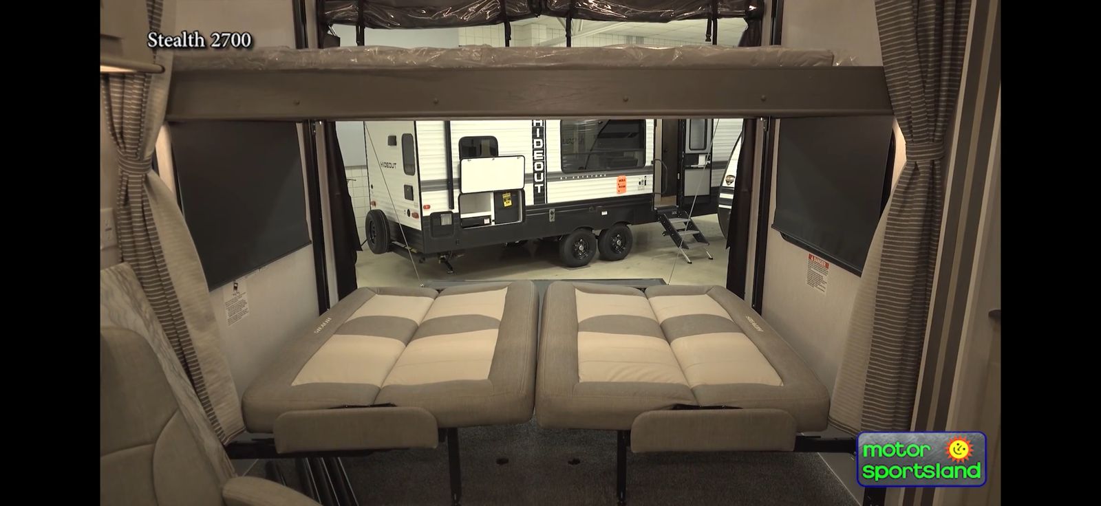 2023 stealth toy hauler 18 foot garage 2 queen beds 1 king bed, 2 rest TVs, fireplace, convection microwave, 12V refrigerator, 2 AC units, 40 gallon gas tank, 130 gallons freshwater, 4500 W power inverter with remote start ,solar panels, swivel recliners Call or text Mark at 801-604-7095 for more information