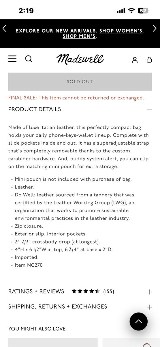 Excellent shape. I only used it a couple of times- I need something bigger. See photo for information directly from Madewell.